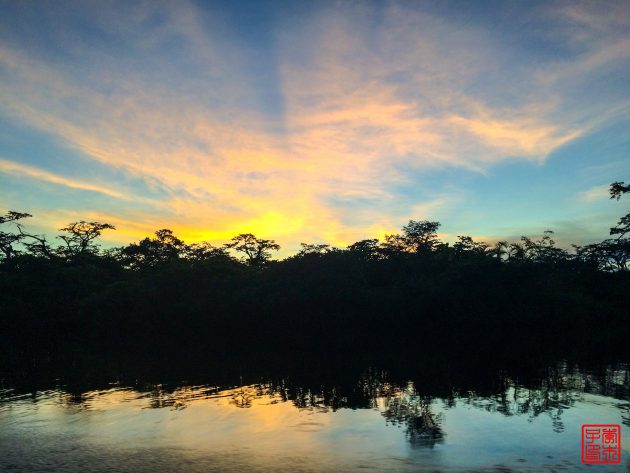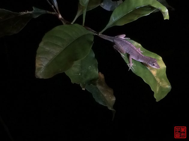 晚上的徒步寻动物之旅,看到的还是各种蜘蛛各种蚂蚱各种虫子。唯一一个可爱的小蜥蜴还是我发现的。亚马逊的最后一晚有些闷热。