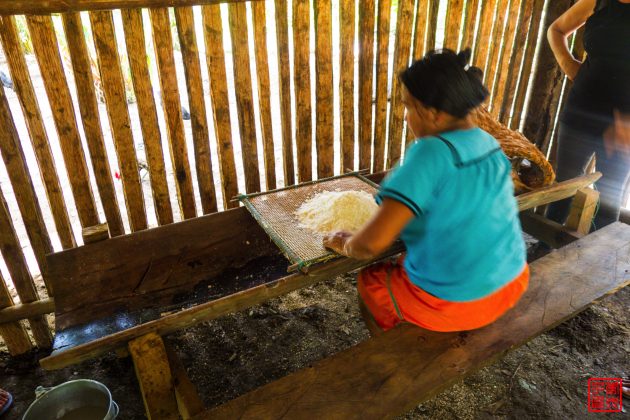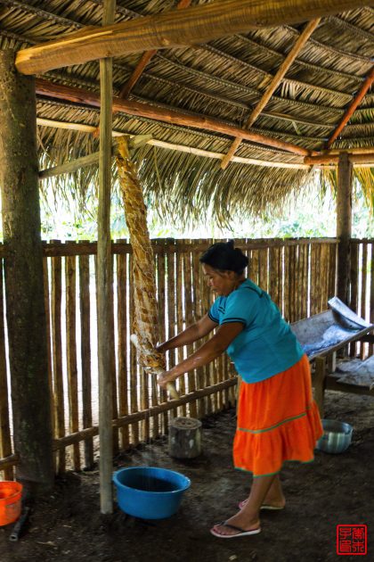这个植物好像是叫yucca,吃的是根部,从地里刨出来后把皮剥掉,回到厨房先把他碾成末,再用一个大草席子把它装好吊起来挤成水,汁儿是用来做汤的,剩下的粉末立刻就变身面粉了,直接摊在锅上烙饼,不用添加任何东西,纯天然无污染!