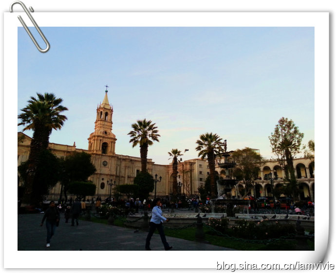 回到旅行社,把一切都敲定。misti火山登山主要有两条线路,一条是容易一些的从4000米开始爬,是经过保护区,风景据说好一些。但是这一条要事先申请许可证才能去,我的来不及申请了,就爬的是另一条从3300米开始爬的。晚上要和向导碰头,我和细细先去把她的峡谷团报好。经过阿雷基帕的主广场,感觉好有欧洲风情。