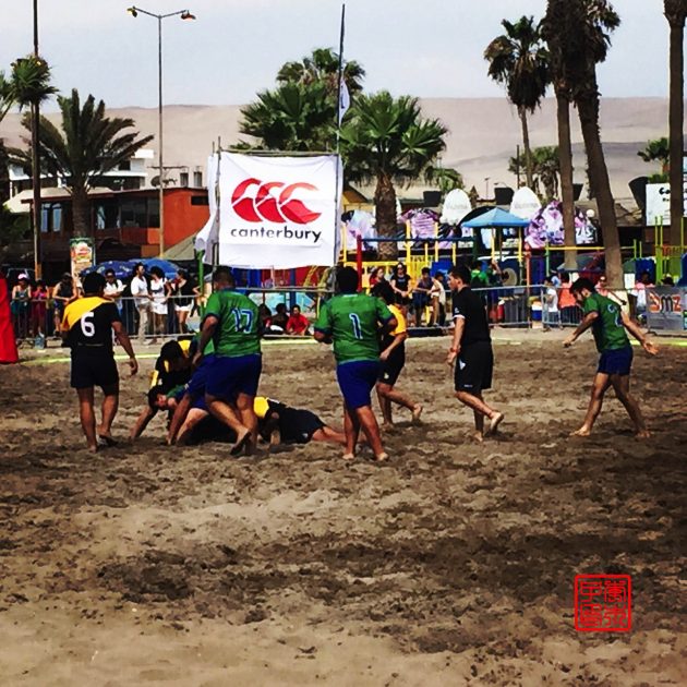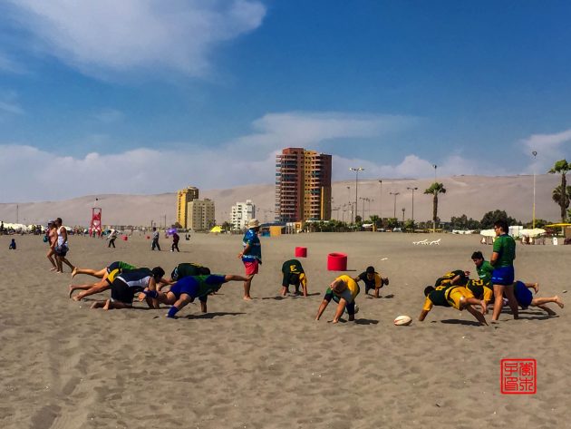 Arica是以冲浪闻名的,来到海边沙滩晃晃,看到原来还有沙滩橄榄球这种项目。今天好像是Arica什么联盟的比赛,沙滩上好热闹。