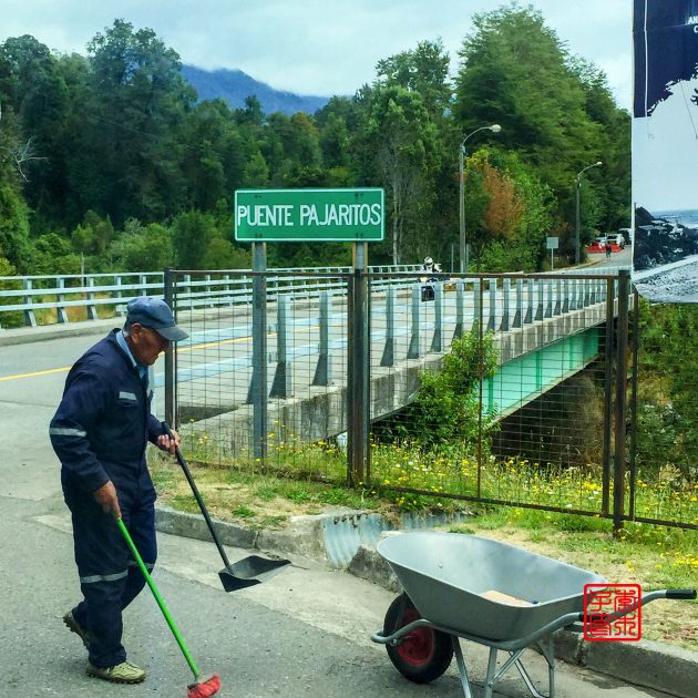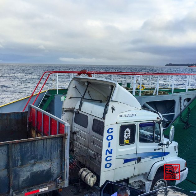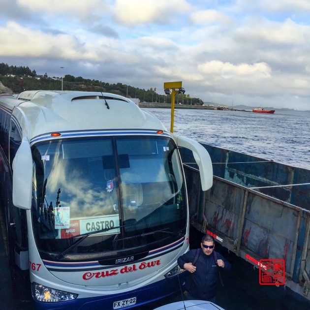 因为在智利边境排队太久,九个多小时才到智利的港口城市Puerto Montt蒙特港,说好的六小时呢!今天的目的地是Isla de Chiloé奇洛埃岛的首府Castro卡斯特罗市,从Puerto Montt直接买大巴票去岛上,中间过海的时候,大巴是直接上轮渡的。
