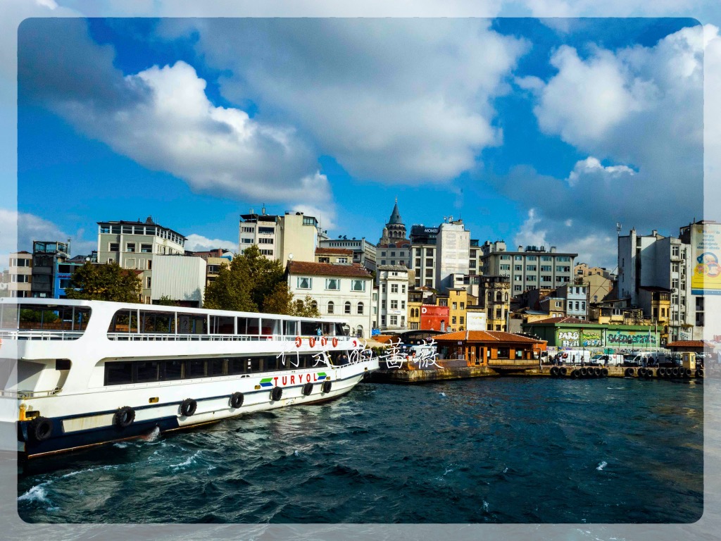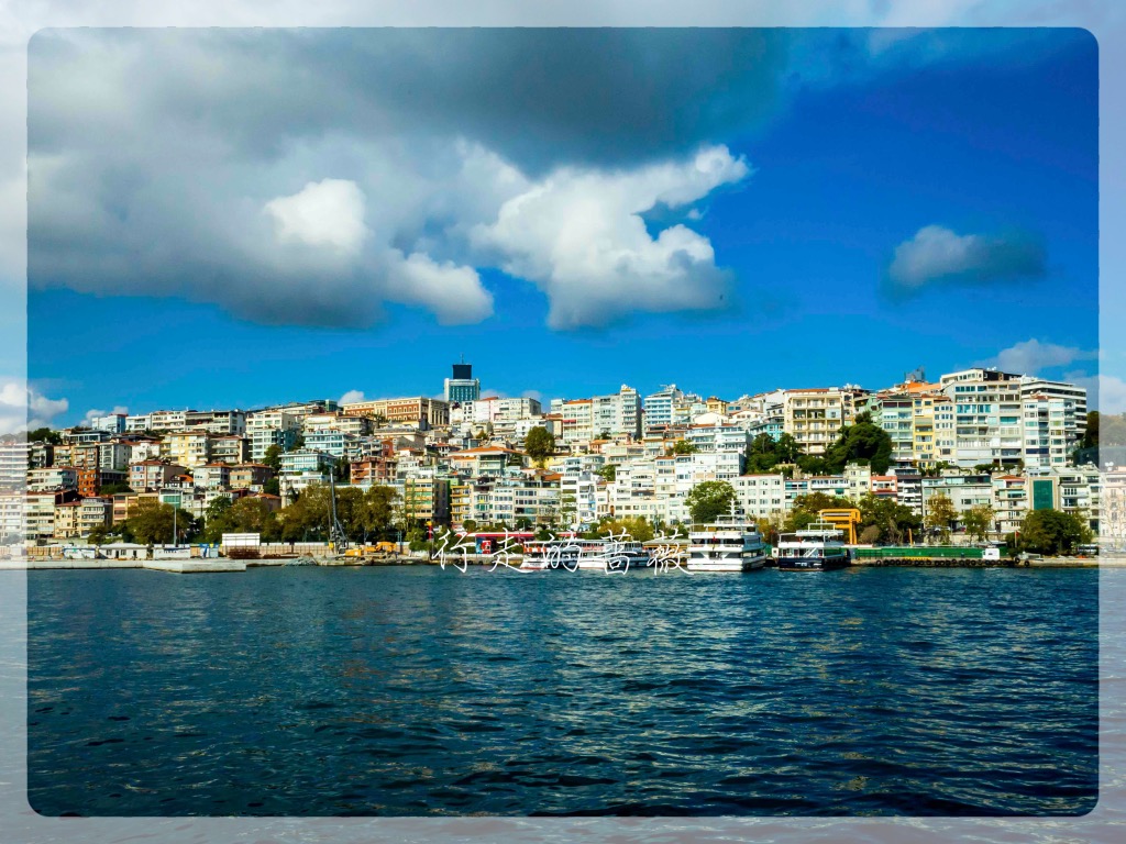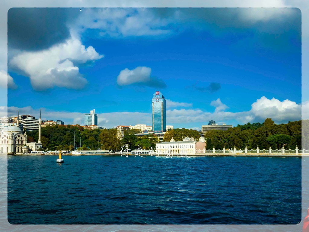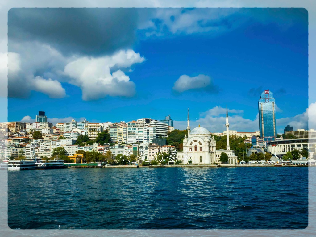 游船码头在Eminönü,有好几家公司运营游船。从老城坐有轨电车T1就可到达,码头就在加拉塔大桥那边。我选了Turyol公司的,船次也比较多。下了电车正好赶上一班要出发的,在码头买票直接登船。今天天空云彩也比较厚,不是像前几天那么晴朗。游船路线是沿着欧洲这边海岸过去,返程是从亚洲那一边,沿途可以欣赏到不少标志性建筑,多亏了这些都选址在海岸边上,位置真是好。