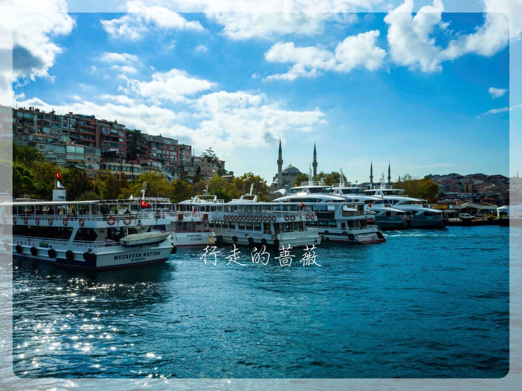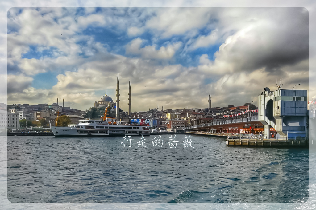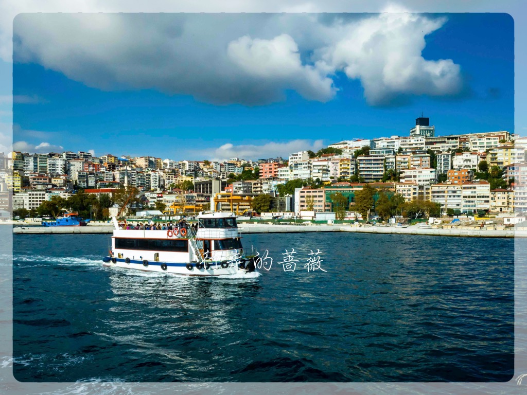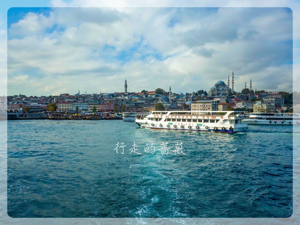 游船码头在Eminönü,有好几家公司运营游船。从老城坐有轨电车T1就可到达,码头就在加拉塔大桥那边。我选了Turyol公司的,船次也比较多。下了电车正好赶上一班要出发的,在码头买票直接登船。今天天空云彩也比较厚,不是像前几天那么晴朗。游船路线是沿着欧洲这边海岸过去,返程是从亚洲那一边,沿途可以欣赏到不少标志性建筑,多亏了这些都选址在海岸边上,位置真是好。