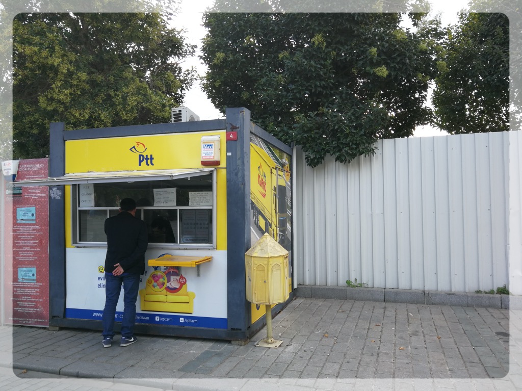 今天要把计划中的博思普鲁斯海峡游船完成,出门的时候还算早,老城广场游客还比较少,拍了张索菲亚大教堂的全景。今天是在土耳其的最后一天了,要把明信片寄掉。大教堂旁边就有一个邮局的小亭子,黄色的ptt就是,买了邮票贴好,把我和细细的明信片都寄走了。