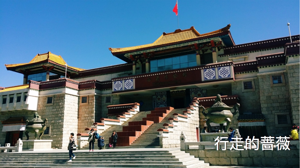 今天终于把西藏博物馆给去了,昨天其实已经到门口了,安检的大婶非不让我带水进去,我说那怎么办,她说倒了啊!那我不开心了,以为自己是大都会博物馆呢,哪儿那么多规矩,不让带也要能给我存包啊。今天又跑了一趟逛完了,博物馆免费,讲解器10元,乌央乌央的旅游团不断把游客仍在博物馆门口,还有坐那儿打牌的。博物馆不大,没什么特别重要的馆藏,但对西藏的历史了解还是有帮助的。
