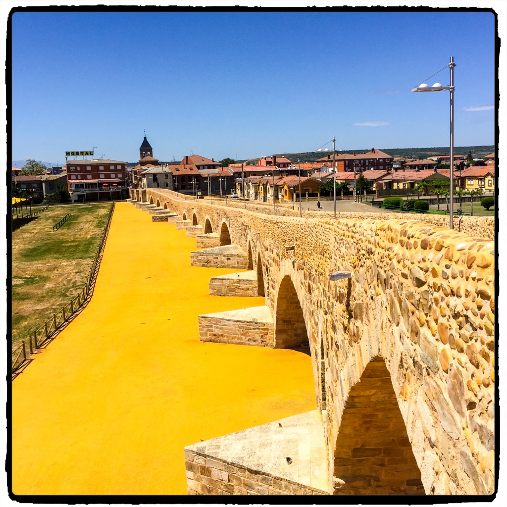 住宿的这个镇的桥很有特色很稀饭,超带感。距离圣地亚哥只有不到300公里了,小小的兴奋一下。今天的落脚地是Karl Leisner,是个德国人的什么组织开的,也很赞。发现自己对住宿最高的需求就是有一个可以晒太阳环境好的的大花园,当然再有干净整洁宽敞的房间和洗漱间也很重要。今天和一些加拿大大妈混在一起,一个Halifax的一个Alberta的,按理说加拿大人是比较友善的,但我发现碰到的我喜欢的都是魁瓜,别的省份的感觉不是很对路子,有的心高气傲有的感觉事儿事儿的。按照国籍来说的话,总体比较喜欢德国人~今天还遇到一个芬兰人,有三个汉字纹身,我问他知道什么意思么,他说他就是把他们语言的三个词找人翻译成汉语做成纹身的,兄弟你要知道这汉字每个字的意思有很多种,拼凑在一起的三个字就有点怪怪的,要我说每个词应该至少翻译成两个汉字才能表达出意思嘛。老外还真是喜欢汉字的纹身,但是很多都写的太丑了。。。今天又碰到Jahun了,哈哈,韩国人聚在一起就会一起吃泡面,西班牙的本地泡面可真是不怎么样,我问他们好吃么,他们说不好吃可还是会继续吃。