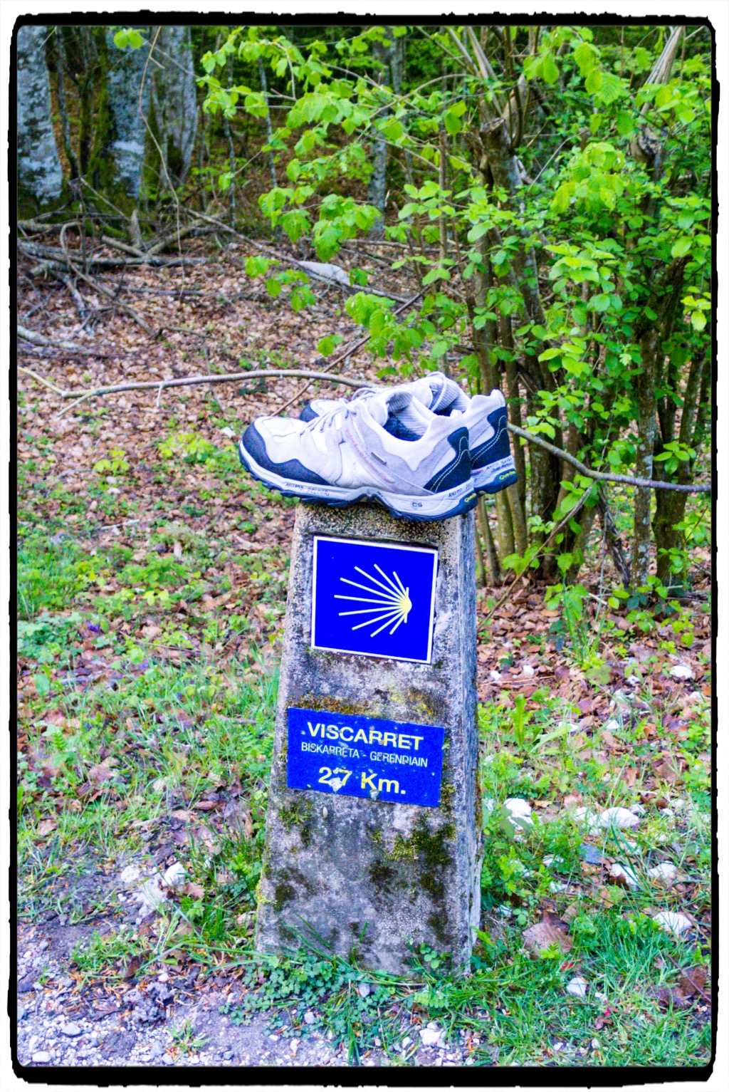 出门感觉凉飕飕的,赶紧把fleece穿起来,早晨雾很大,走在路上有种迷雾森林的感觉,很不真实,就像在童话世界里一样,蛮享受这种感觉的。路上三三两两的人们,在不知什么名字的小镇停下来吃了个brunch,心满意足的上路了。之后大部分都在森林里穿梭,但越走越看不到人,很害怕走错路。过了Zubiri就感觉浑身酸痛,脚也痛肩膀也酸,腰带那里也淤青一片,恨不得把背包扔了。