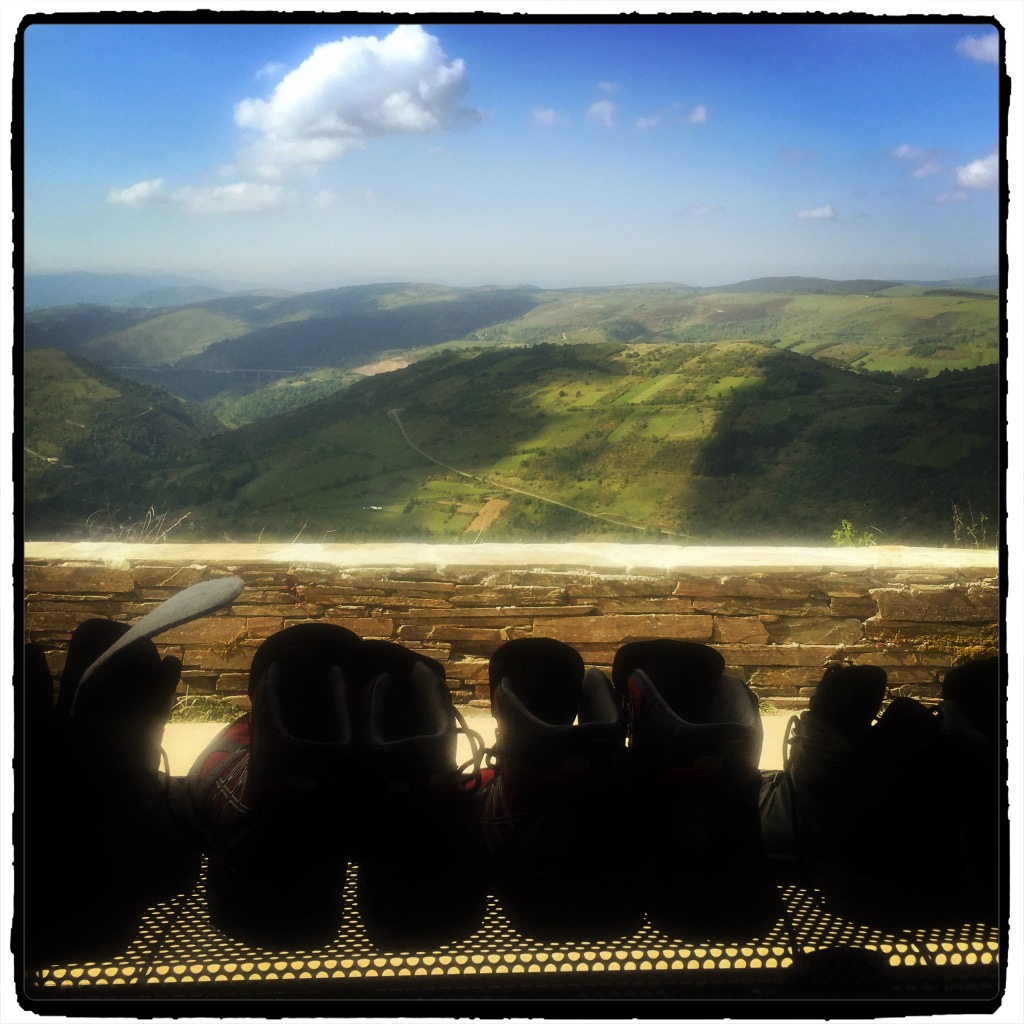 住宿又是一间很大规模的旅馆,能容纳几百人的。不过因为下个镇非常远,来得晚没位子的也很郁闷,听说那个练芭蕾的美国姑娘不甘心就继续走了,佩服!最好笑的是他很多两张上下铺是挨着的,也就是说很可能并排和你睡的就是陌生人。。。还好我被分到了单床,James和小黑就并排睡了一晚,互相埋怨晚上有被踢到,哈哈。到了西班牙Garicia区就开始喝别的啤酒了,我们挑了一些不同牌子的来喝,结果有一种貌似很凶猛,James有点喝多了回去一直要给我们看他腿上的纹身,恩,位置是大腿跟上。。。