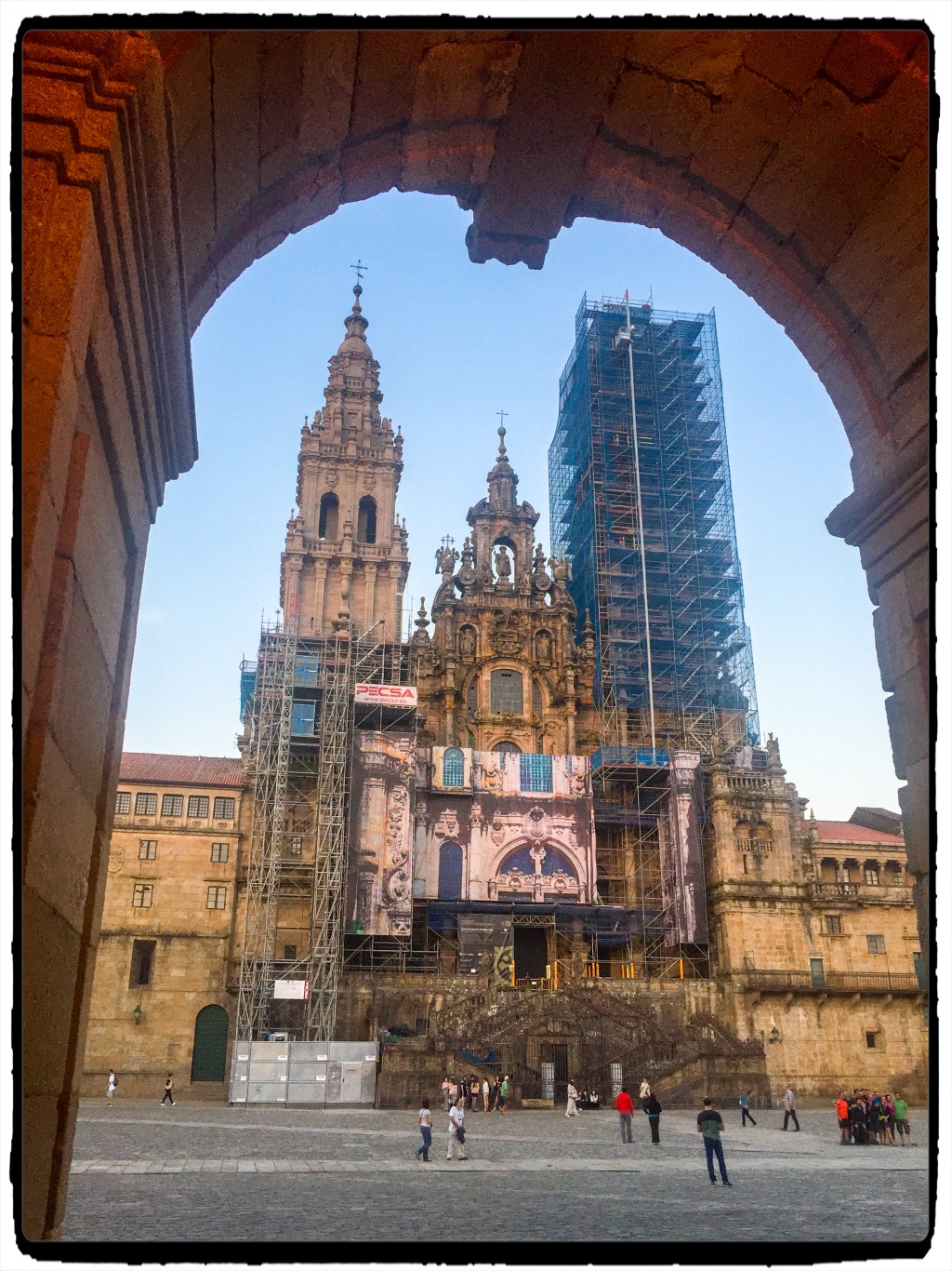 这样终于赶在人潮之前,早一步到达了Santiago。一路上都在幻想着最后看到大教堂会是怎样的一种体验,但是千算万算也没想到是这样的…好想发脾气!说好的大教堂呢,什么没有人告诉我在整修!