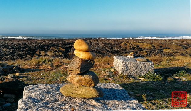 在走到海边要上栈道的时候,隐约看到前面有个人背着背包,我们还在猜测他/她是不是朝圣者呢,因为背包看着有点小,走近了才发现就是那个爱尔兰姑娘!简直是啼笑皆非,又让我们失望了。一路上她变成了我们八卦的主题 ,因为实在是没遇到其他人,连她这么不讨喜的都变成了我们的话题哎。她比我们早走那么多,不知道为什么才走到这里。