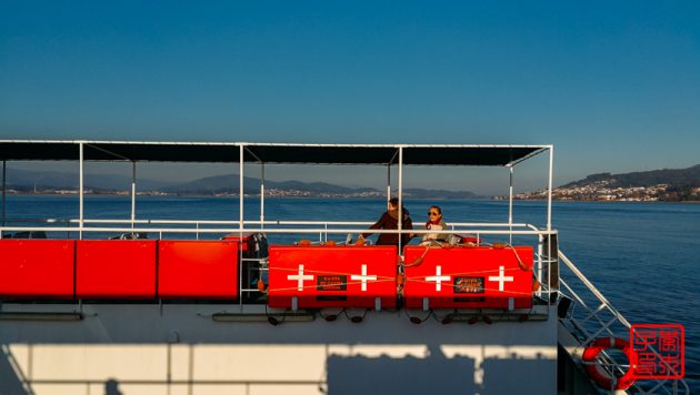 好容易到了Caminha,已经筋疲力尽了,脚也痛肩膀也痛。本来其实可以住在Caminha的,但是听那个德国小伙子说好像每天第一班船要到12点才有,那就好浪费时间,所以我们决定当天就坐轮渡赶到西班牙。到了码头,正好有一班轮渡要走,好开心,赶紧买票上船。大概也就十分钟十五分钟的样子就到了对岸的西班牙。这时候已经是葡萄牙时间下午三点多,西班牙时间四点多了。在码头上了厕所补充了点食物,继续剩下四公里的山路。