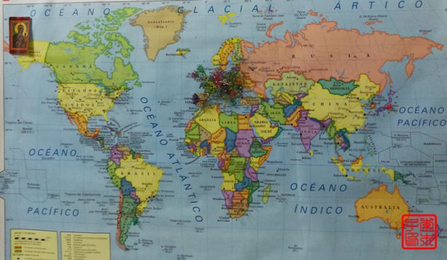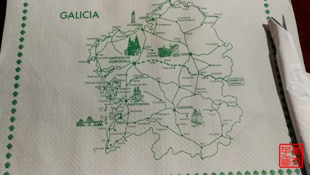 Albergue有张地图,朝圣者把自己的来源地pin到地图上,葡萄牙西班牙简直密密麻麻的,除了欧洲别的地方相对少很多,Montreal也有几个,中国好像只有西安一个,我就把自己家乡pin进去啦,虽然地图上没有标名字,但是看到黄河我就约莫着pin了个位置。