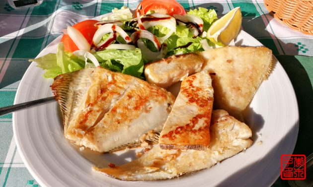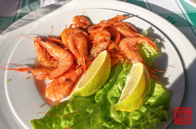 在老城里想找个餐馆吃饭,结果因为街道都很狭窄,所以导致餐馆外面的座位全部在阴影下,想晒太阳都没地方。只好找了个靠外街的,因为是旅游城市所以虽然时间还算早,但是终于吃到顿像样的午餐。午饭吃的前餐小烤虾主餐各种煎鱼甜点是水果,很不错吃,终于吃到一顿像样的饭了。