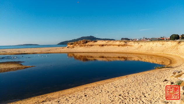 走了大约3、4公里,我看到有一片沙滩风景很不错,很适合面朝大海发呆。Tina也觉得走到Vigo的目标不是很现实了,就商量说不然找个地方住了算了。Finally!终于妥协了,不然我敢肯定我会在途中就撂挑子不干了。
