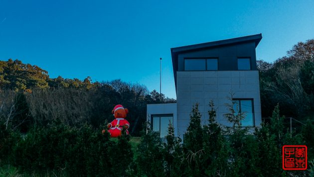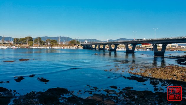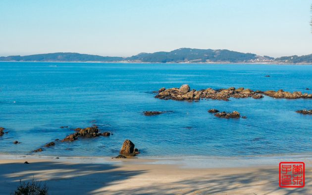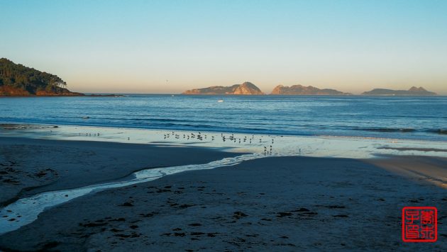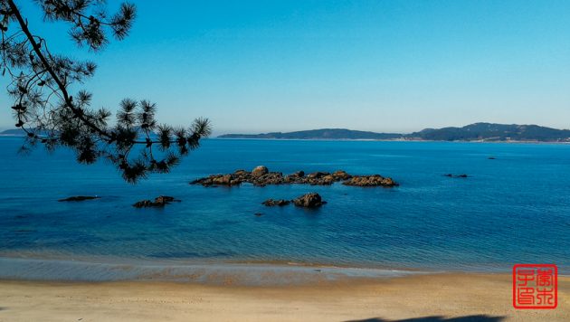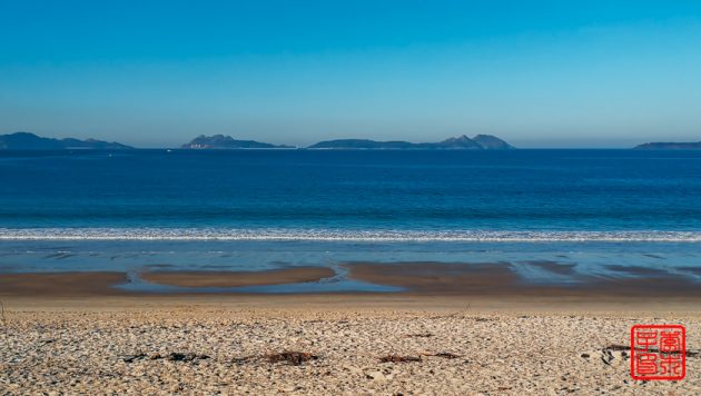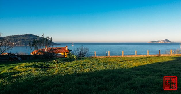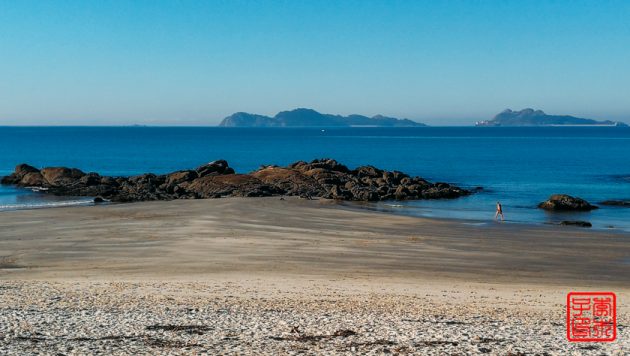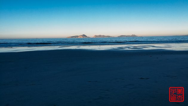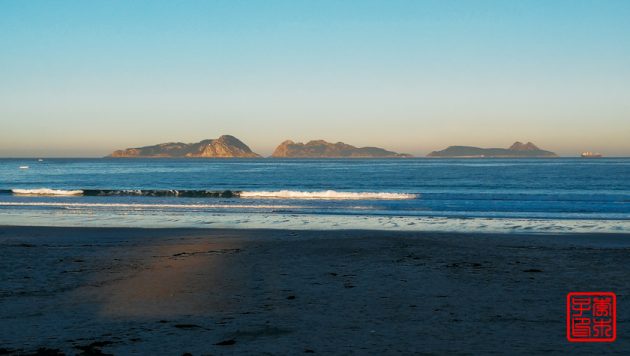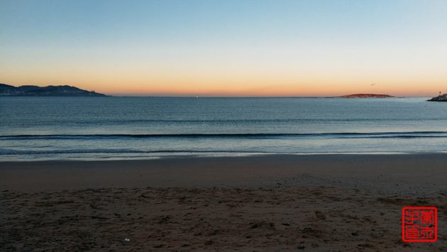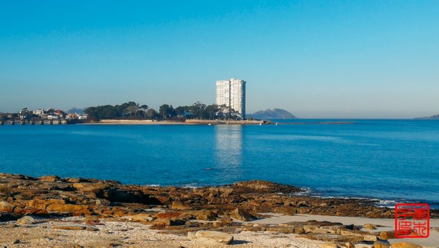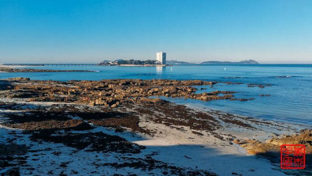 今天不像昨天雾气那么重,所以对岸的岛屿可以看得很清楚。海边一直拍到一栋很丑陋的楼,后来发现原来它是在一个岛上。