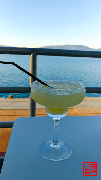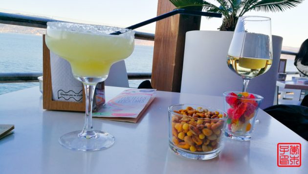 我们来到Tina朋友推荐的一家餐馆Albatros,是在港口轮渡的楼里面,外面看着很不像,但是就在海边,有室内室外,环境超级好,价钱也合适。本来坐外面晒太阳的,但是外面抽烟的人太多,烟味太臭只好回到屋里坐。鸡尾酒一杯5欧,我点了我爱喝的Magrita,我只能说我从来没喝过那么难喝的Magrita不知道西班牙的配方是不是不太一样。以后还是规规矩矩点葡萄酒或者Sangria吧。餐厅是看到到这样的风景的,很赞。