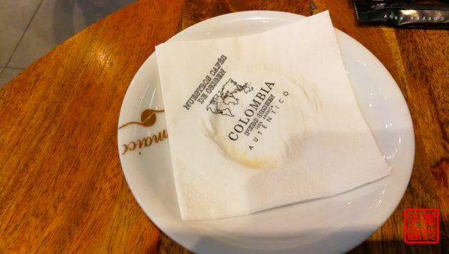 时间还是很早,再不喝点什么我们就要睡着了,来到楼下咖啡馆,觉得不喝咖啡太对不起这家店了但是又怕咖啡喝的睡不着觉,只好点了杯奶很多的。连餐巾纸都是各种咖啡产地哦。