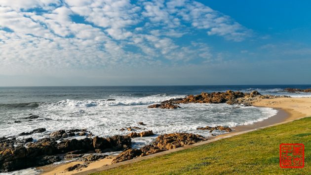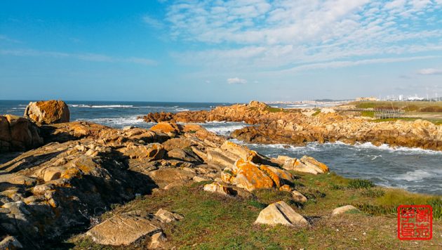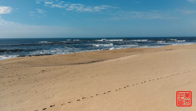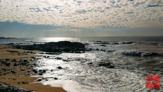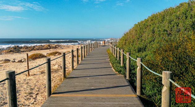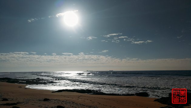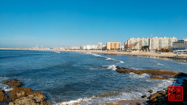 6km左右就结束了Duoro河边的行走,来到了海岸,太阳出来后豁然开朗,经过一个接着一个的沙滩,今天是周末这里还算是波尔图城里,所以还是有市民来海边溜达。看到大海心情好棒,海边都是铺好的路,非常平坦。
