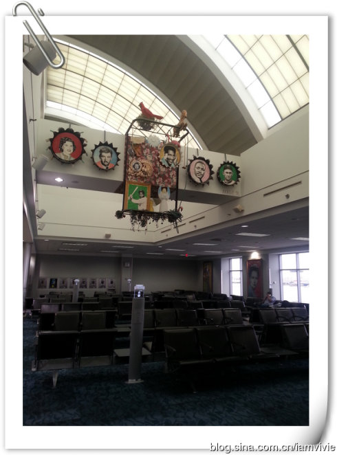 第二趟更惨,先是前一趟飞过来的晚点,就延迟登机。等飞机飞过来检修的时候,说是机械故障又延迟,最后发现不能飞了。。。下一趟回蒙特利尔的已经满员,说要另安排别的飞机,还遥遥无期的等着唉,我觉得看着凶多吉少。改了登机门之后就开始乱了,因为这个门即是有飞montreal又是有飞monterey,傻傻分不清楚啊。。。机场太无聊了,真想随便跳上哪架准备起飞的飞机。亚特兰大候机厅上面挂的那些装饰还蛮有意思的。
