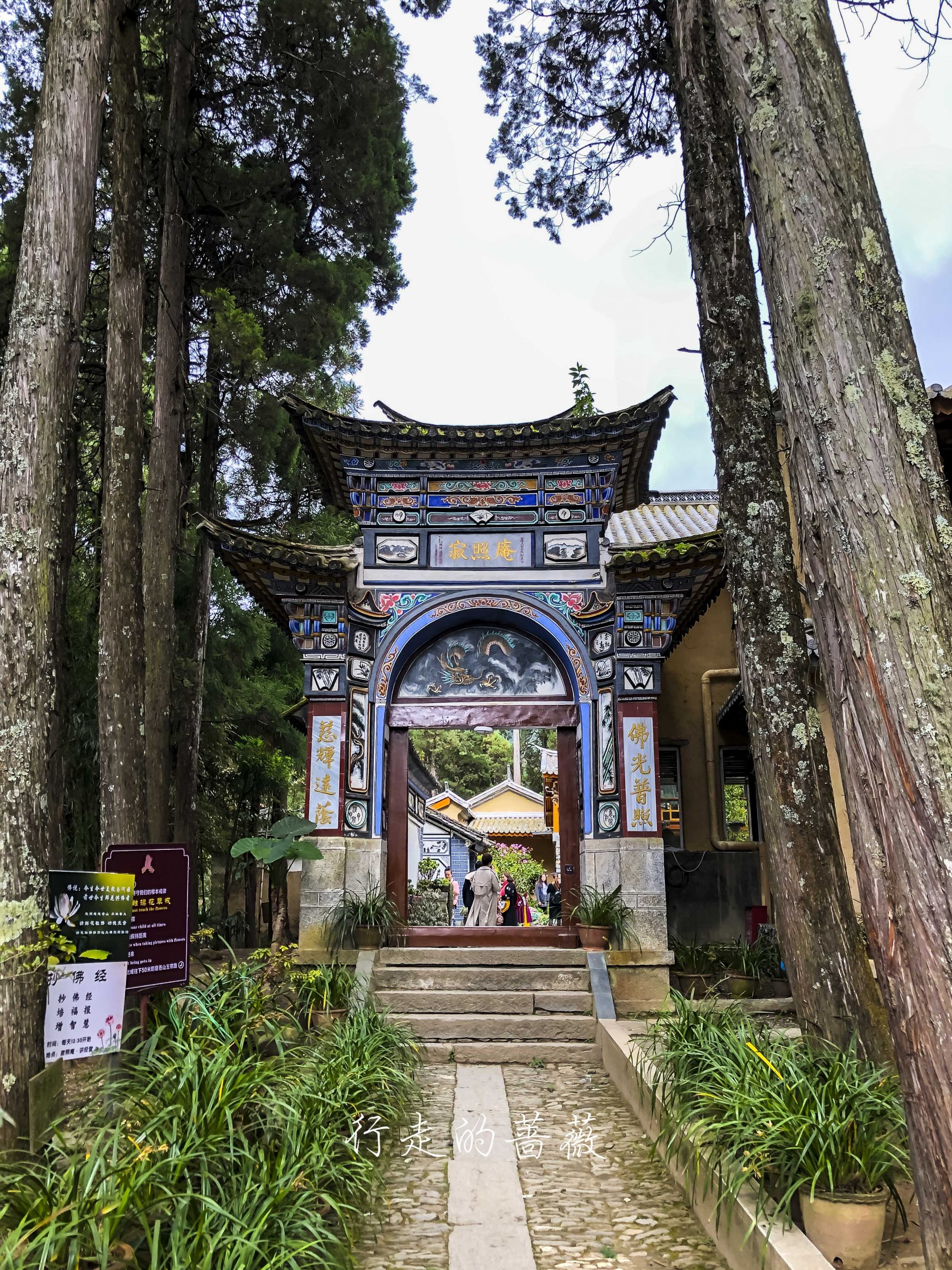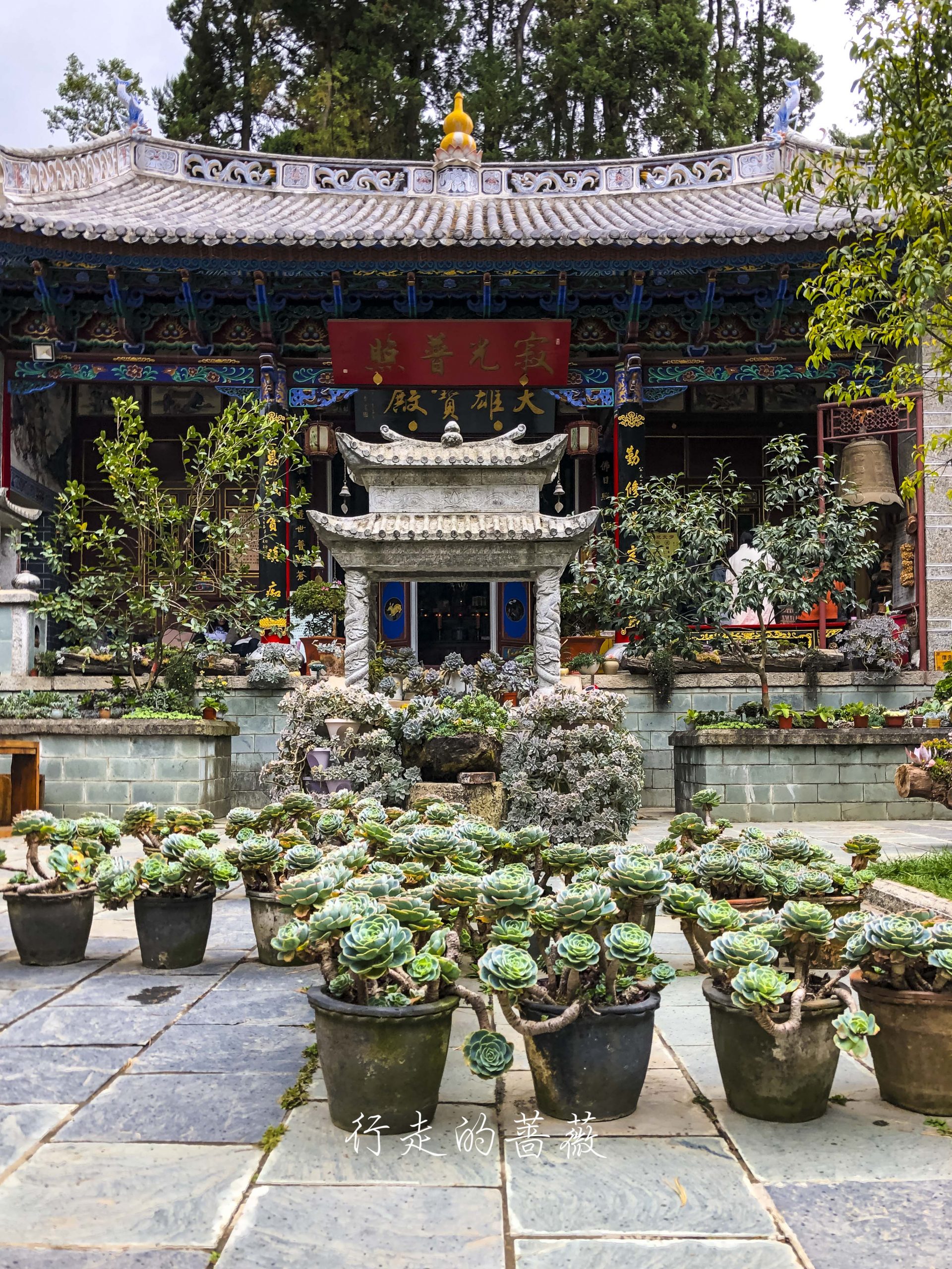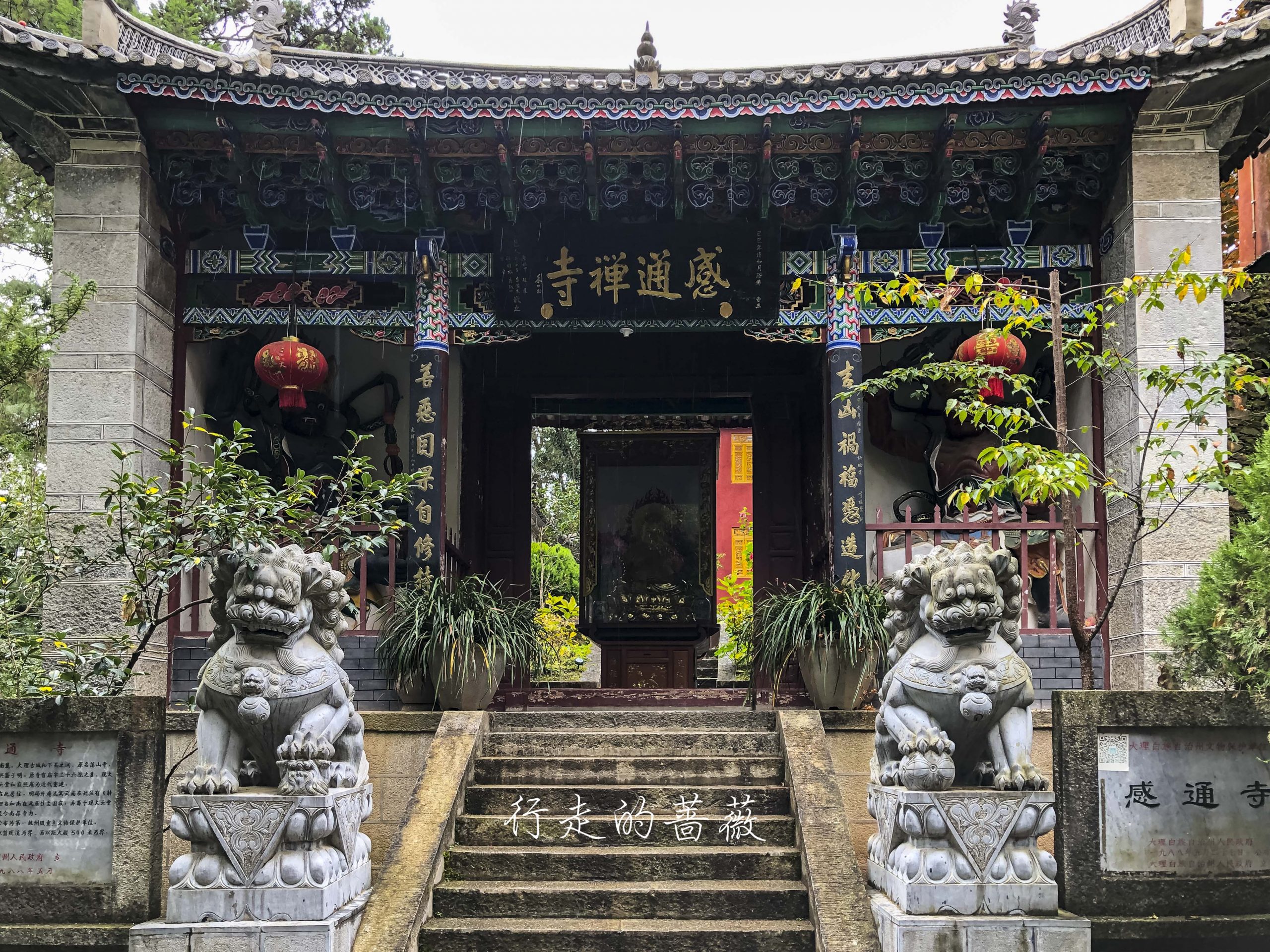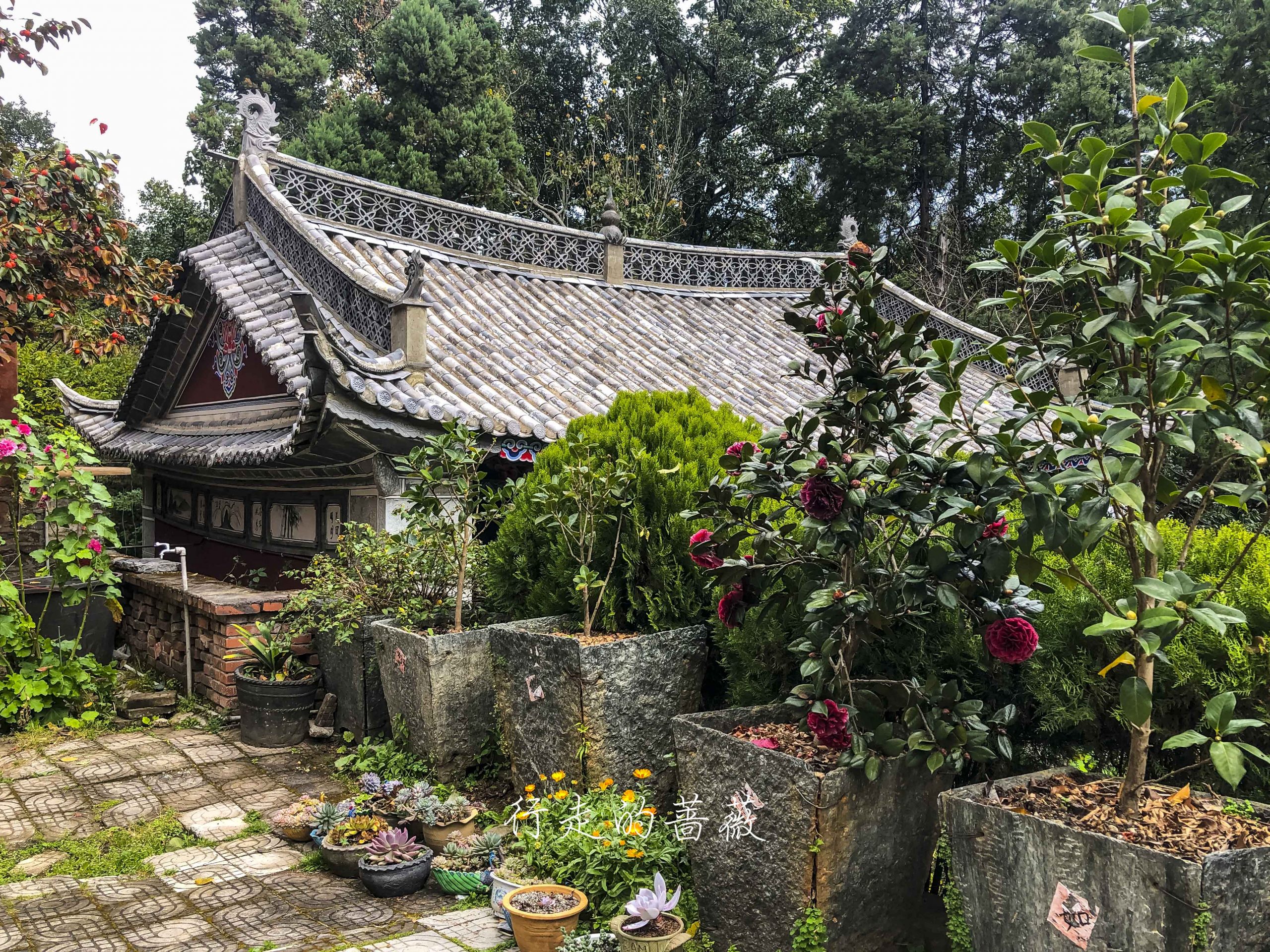 沿着山路走一小段就到了感通寺,比起网红寄照庵,这里还挺冷清的。看到有人拉箱子来寺里,大概也是提供住宿的。天阴阴的,已经开始飘小雨了。在大理的这几天,不论城里有多晴朗,每次往苍山方向看都看到山顶云雾缭绕一副下雨的状态。寺里郁郁葱葱,羡慕云南的气候,感觉随便怎么养,植物都能茂盛生长。