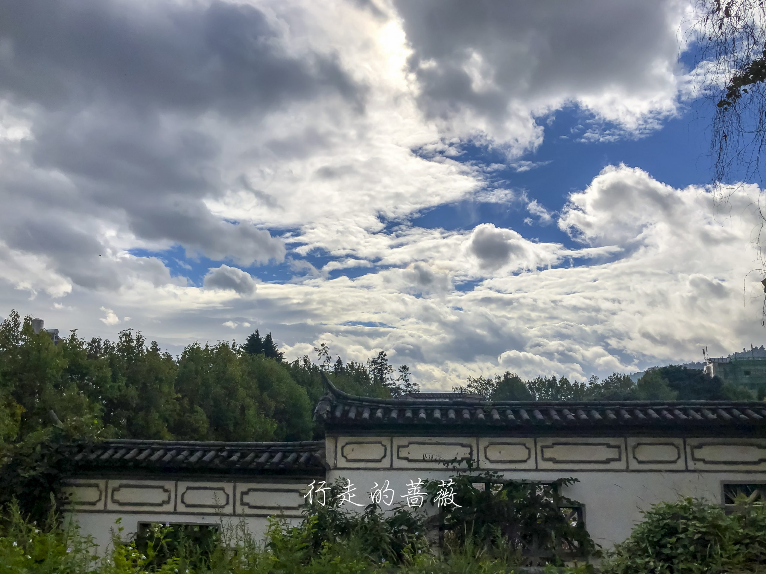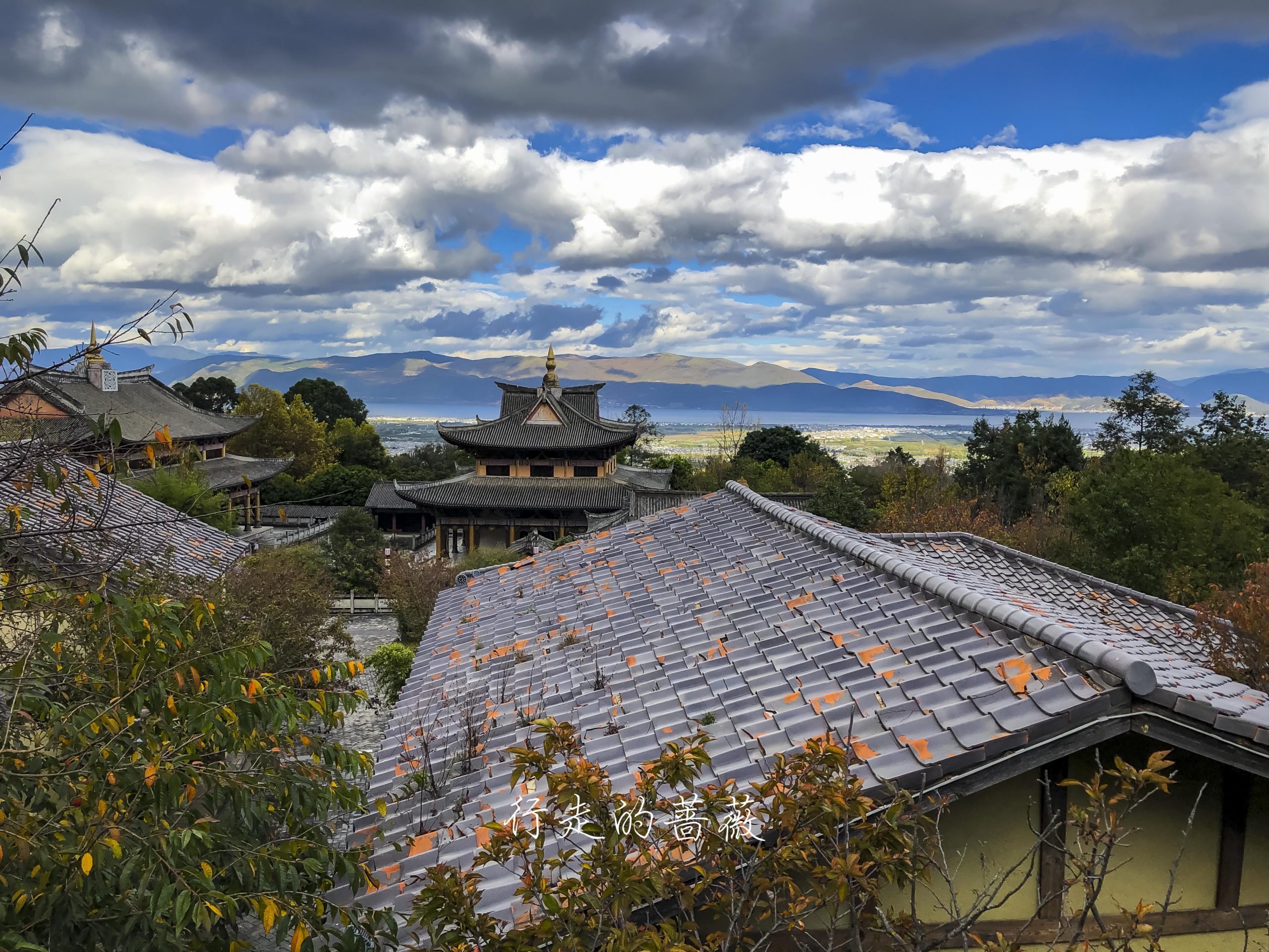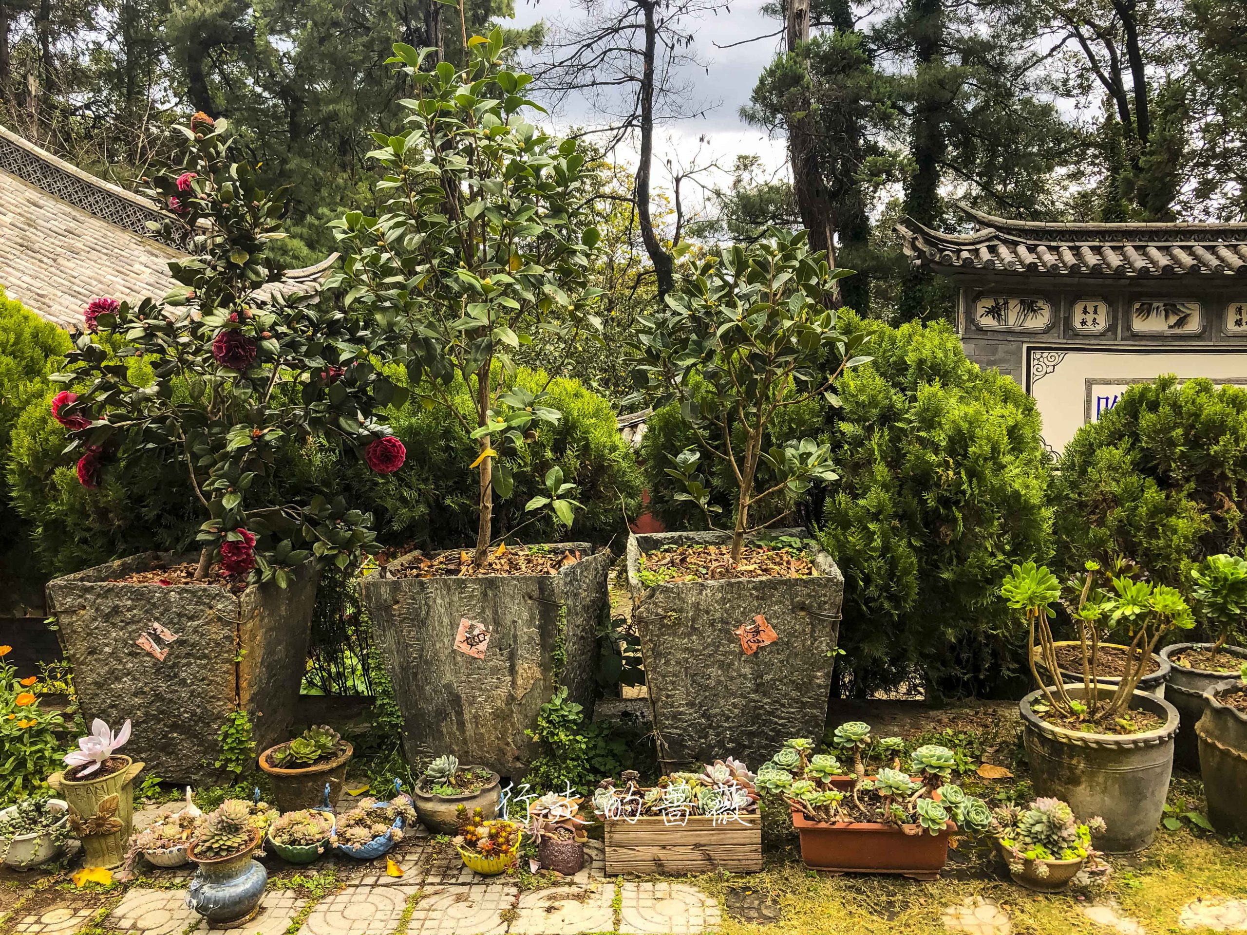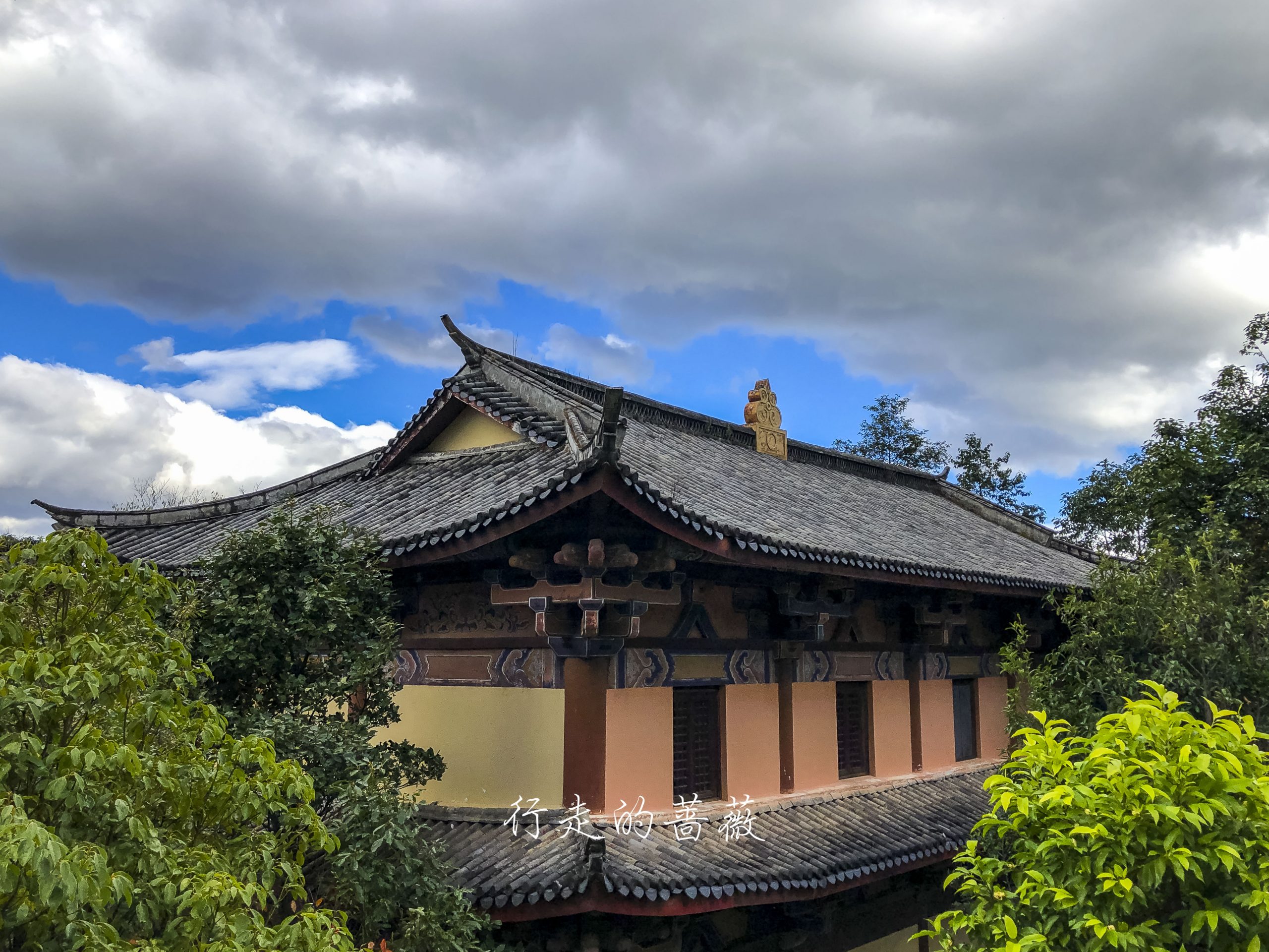 沿着山路走一小段就到了感通寺,比起网红寄照庵,这里还挺冷清的。看到有人拉箱子来寺里,大概也是提供住宿的。天阴阴的,已经开始飘小雨了。在大理的这几天,不论城里有多晴朗,每次往苍山方向看都看到山顶云雾缭绕一副下雨的状态。寺里郁郁葱葱,羡慕云南的气候,感觉随便怎么养,植物都能茂盛生长。