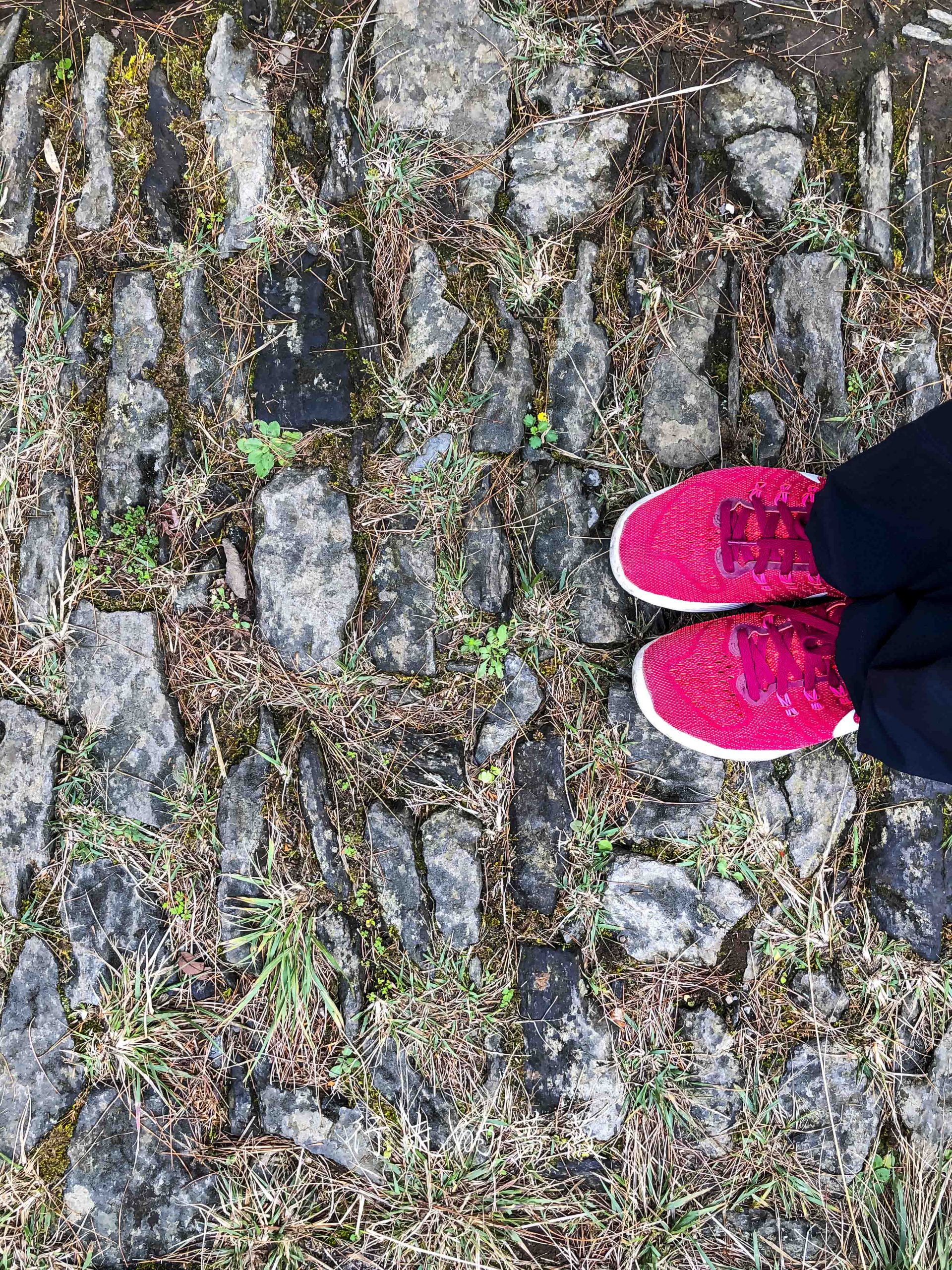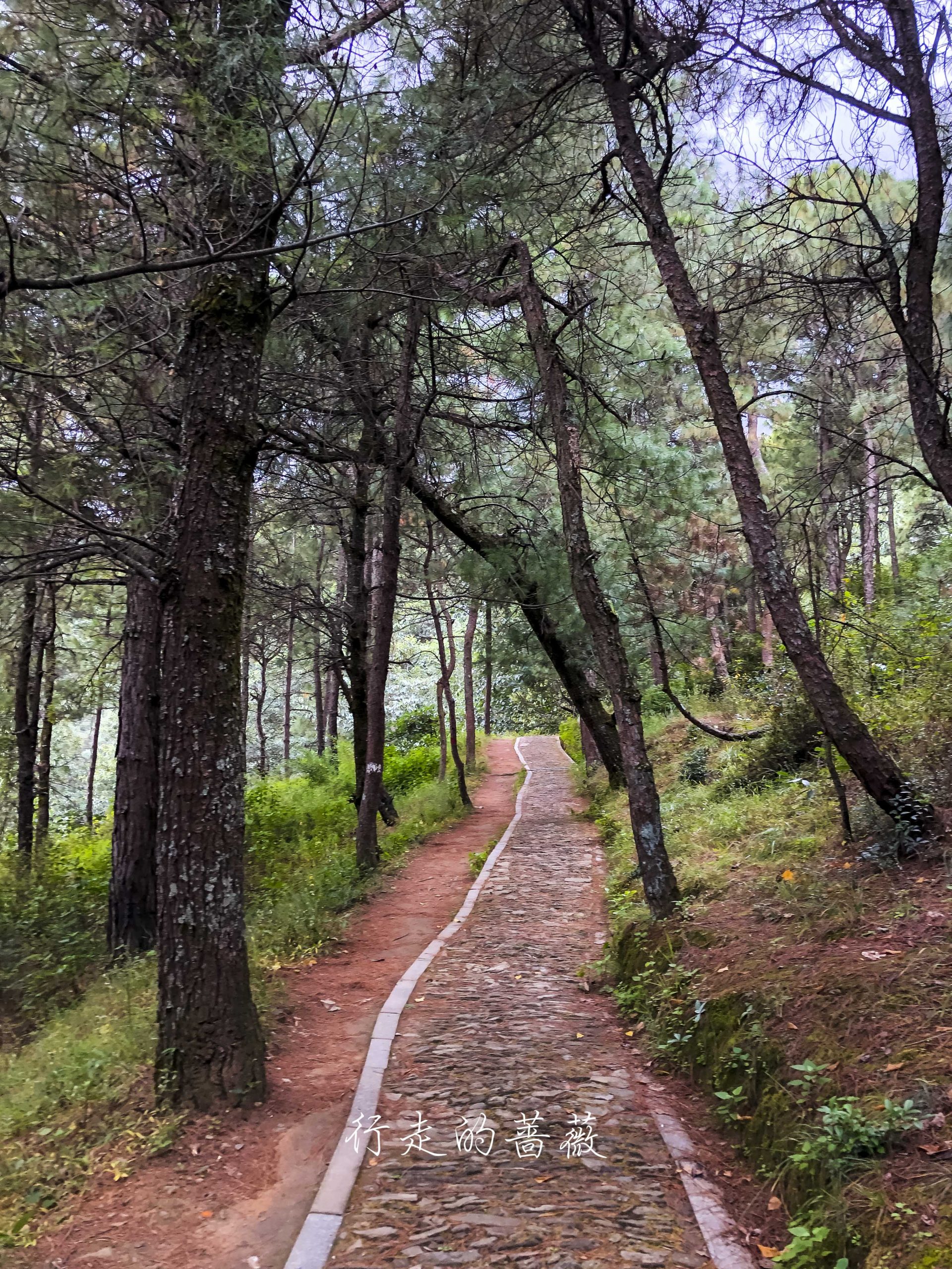 从寄照庵出来,就没有景点,开始爬山了。我以为是一直要上坡呢,结果并不是。开始山里一个鬼都没有,暗自窃喜。结果迎面突然来了一队拉练的小兵们,山路只能容纳两个人并排走,就听见不断地有人往后面传:靠右!靠右!靠右!我尴尬癌都要犯了,因为是下坡,就飞速连蹦带跳的逃走,队伍实在是太长了,半小时后,才终于终于和他们的尾巴告别了!