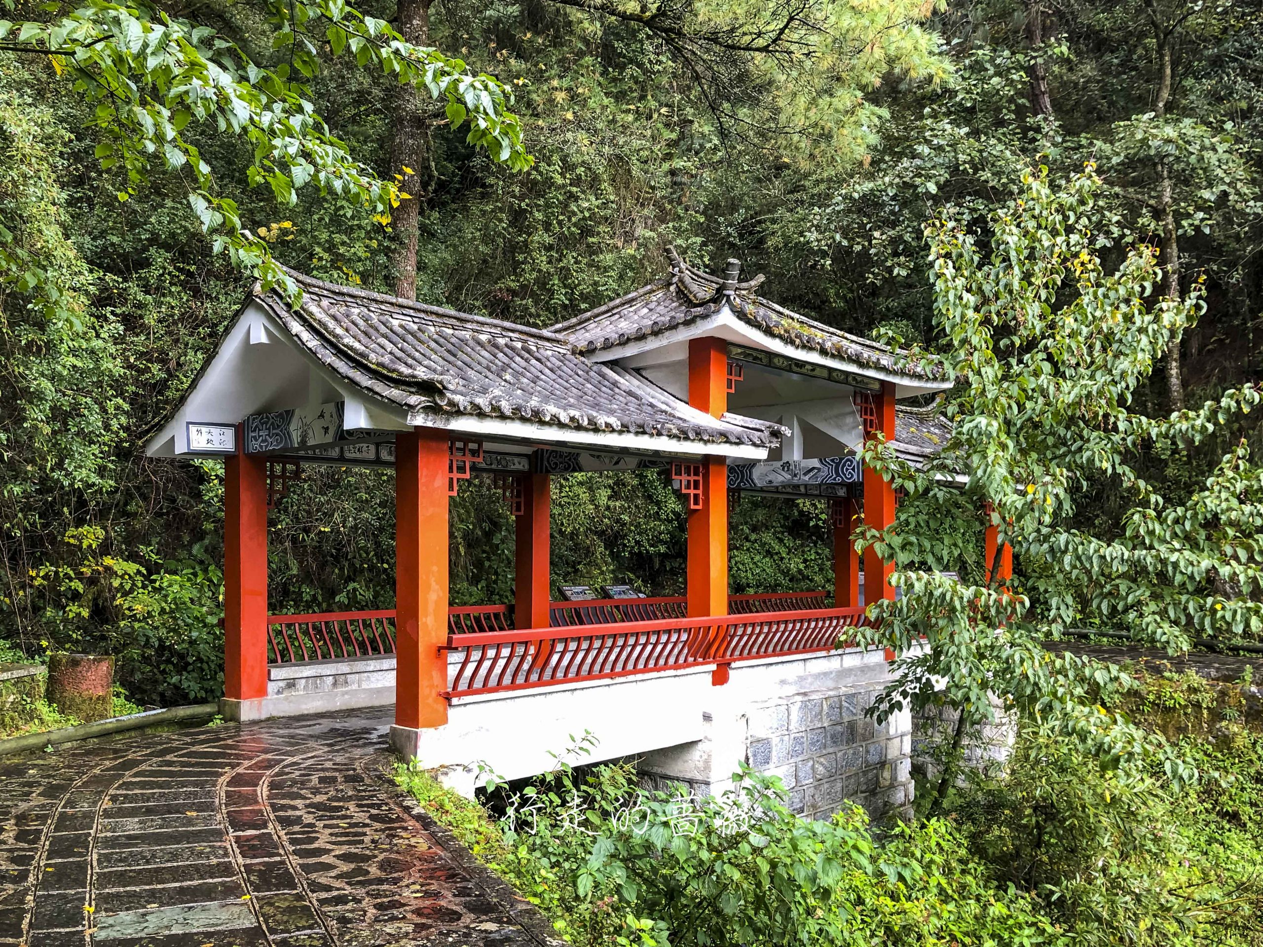 看完清碧溪就走苍山著名的风景优美的徒步路线–玉带云游路,这条路全长约18km,我理想的路线是走完从中和索道下山,但因为早上起太晚时间不够,而且知道今天天气会不好,所以只走了4.5km,然后爬到洗马潭索道的七龙女池中站坐索道下山。玉带路非常平缓,沿途风景也不错,山里人真的很少,走起来真是爽。就是越往上雨越大,但又不想走回头路,只好硬着头皮继续前行。
