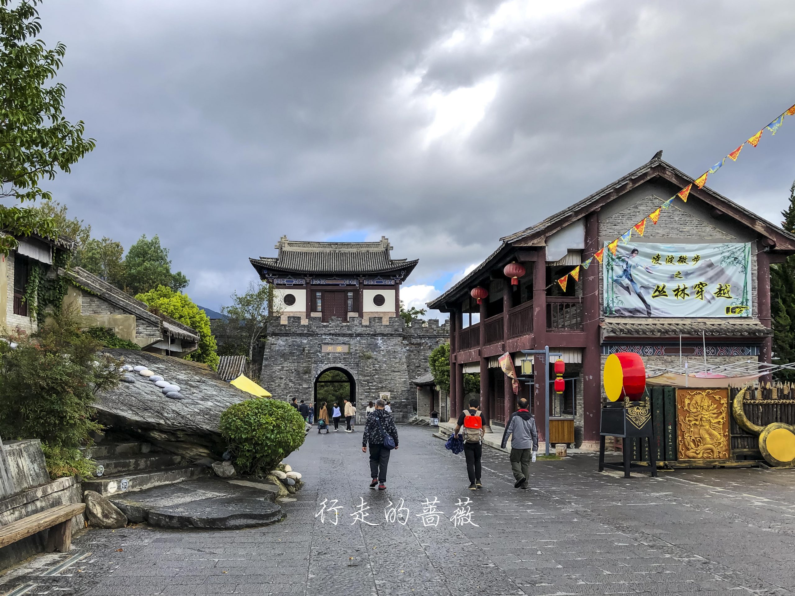 走着走着发现,我已经在影视城里面了,原来索道票大概包括了这个景点。估计如果不这样营销,可能来这里的人就会少很多。随便溜达了一下,一波一波的旅行团的人。大理王宫在一进门的地方,游客最多。还有很多人卡着时间等待看各种表演,也是影视城吸引游客的点之一。其实建筑挺有特色的,但就是感觉假假的哈哈。