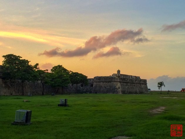 吃完午饭,还是鼓起勇气顶着大太阳,来参观了下这个西班牙人在海外建造的最大要塞Castillo de San Felipe de Barajas圣费利佩城堡,听了一个半小时的晦涩的语音讲解接受了下历史教育,把要塞逛完。要塞始建于1536,并在1657年大规模的扩大,建在一个小山上,比较特别的是它是三角形的,周边是炮台。在1984年,和卡特赫纳老城一起被UNESCO评为了世界遗产。