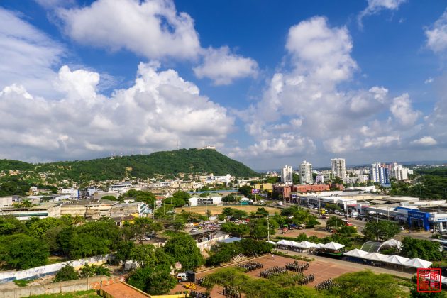 可以远眺卡特赫纳老城和新城,下面大概是军校学生的演习表演。