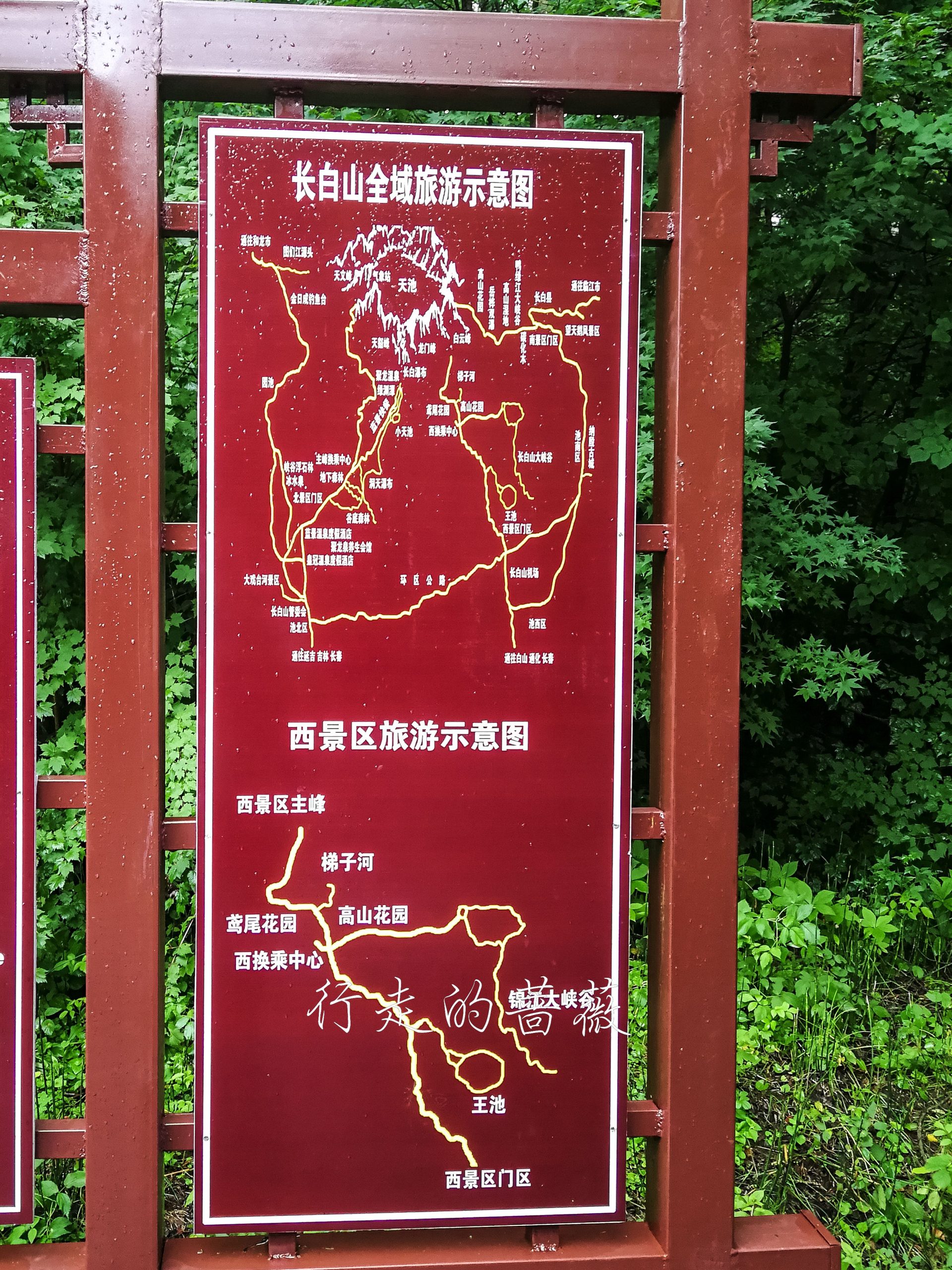 今天要去看天池啦,早上天阴沉沉的,但是没有下雨,还是有点担心天气。集散中心附近有个商业街,有些餐馆和特产商店,买了两件雨衣放在背包里备用。