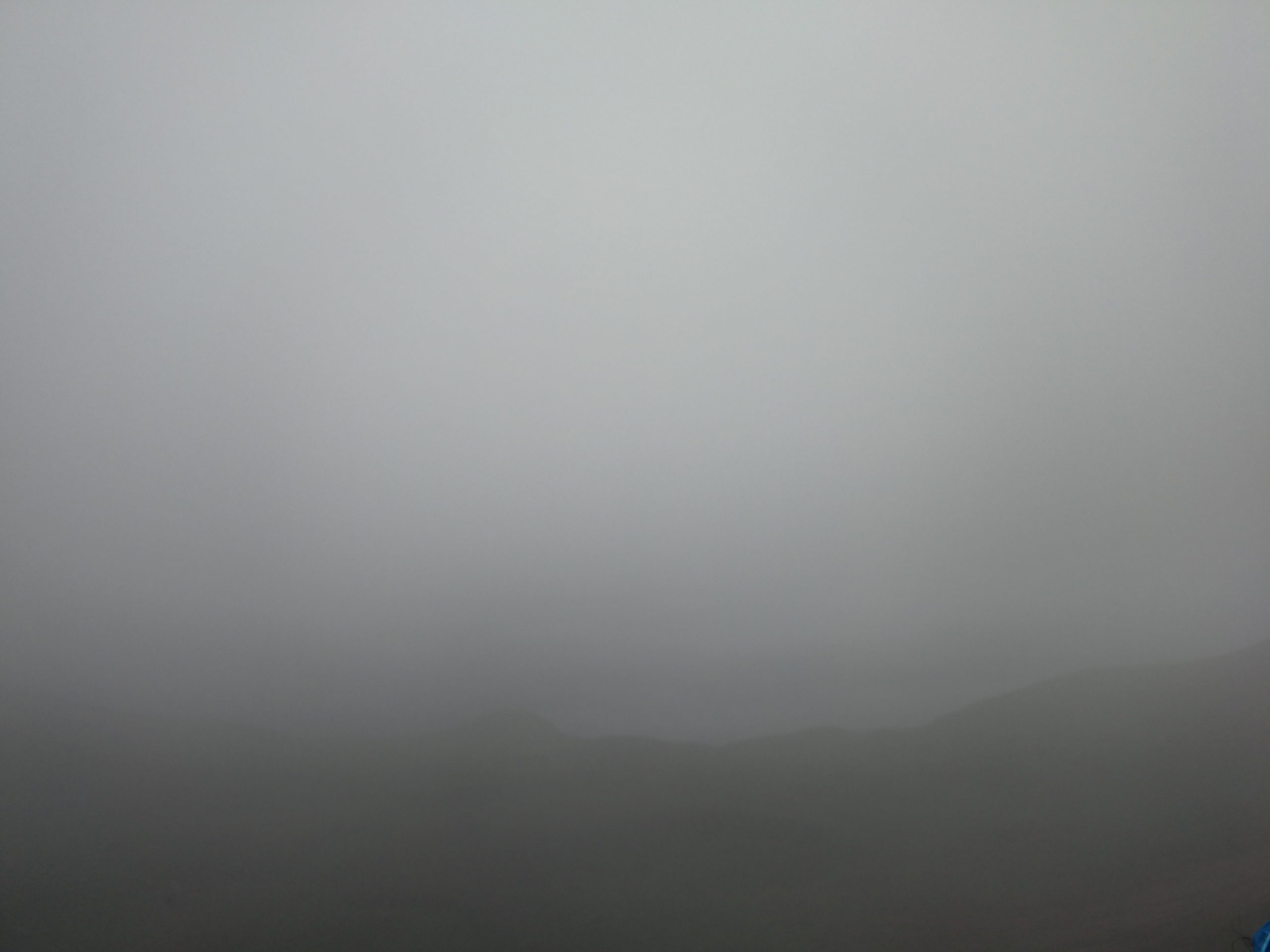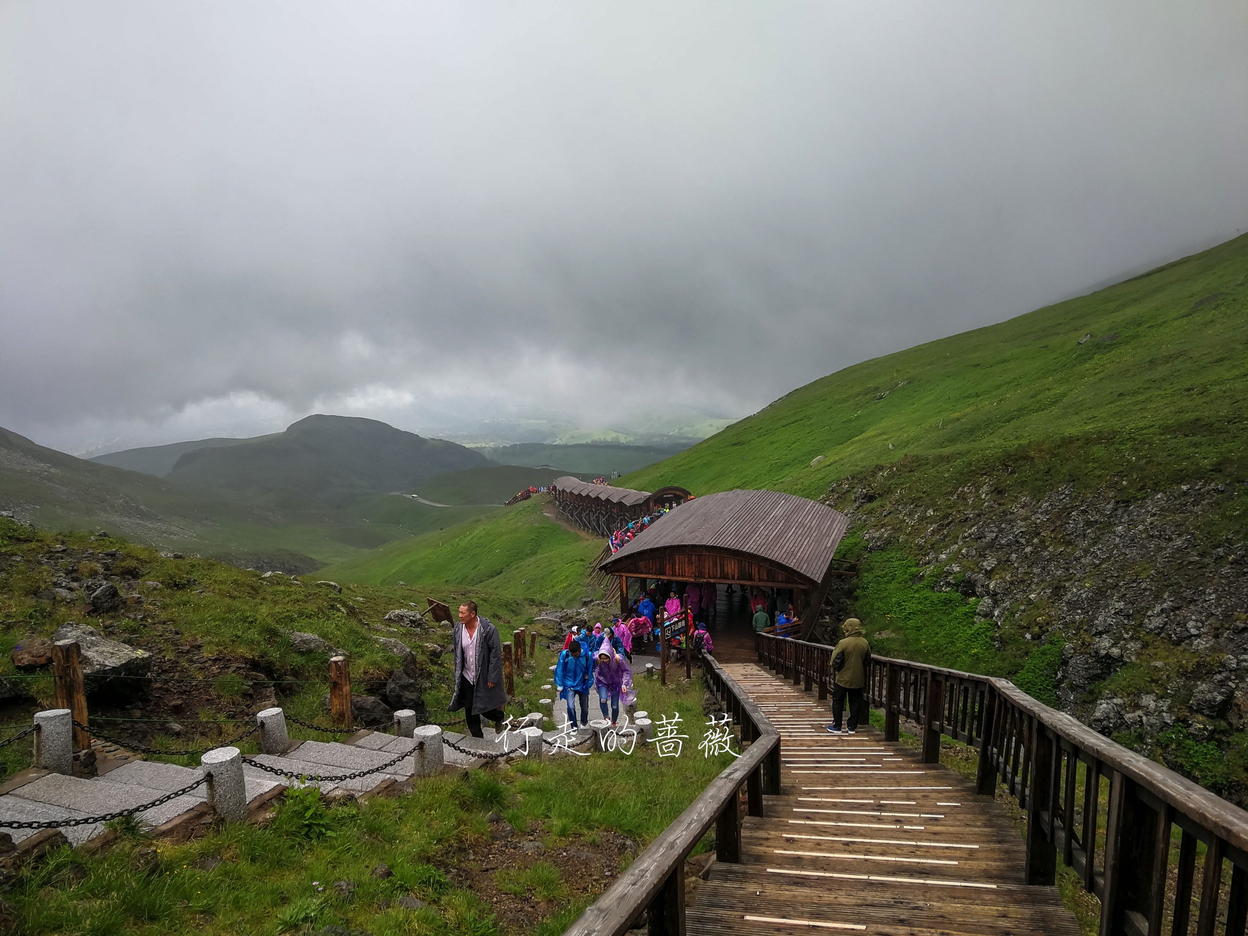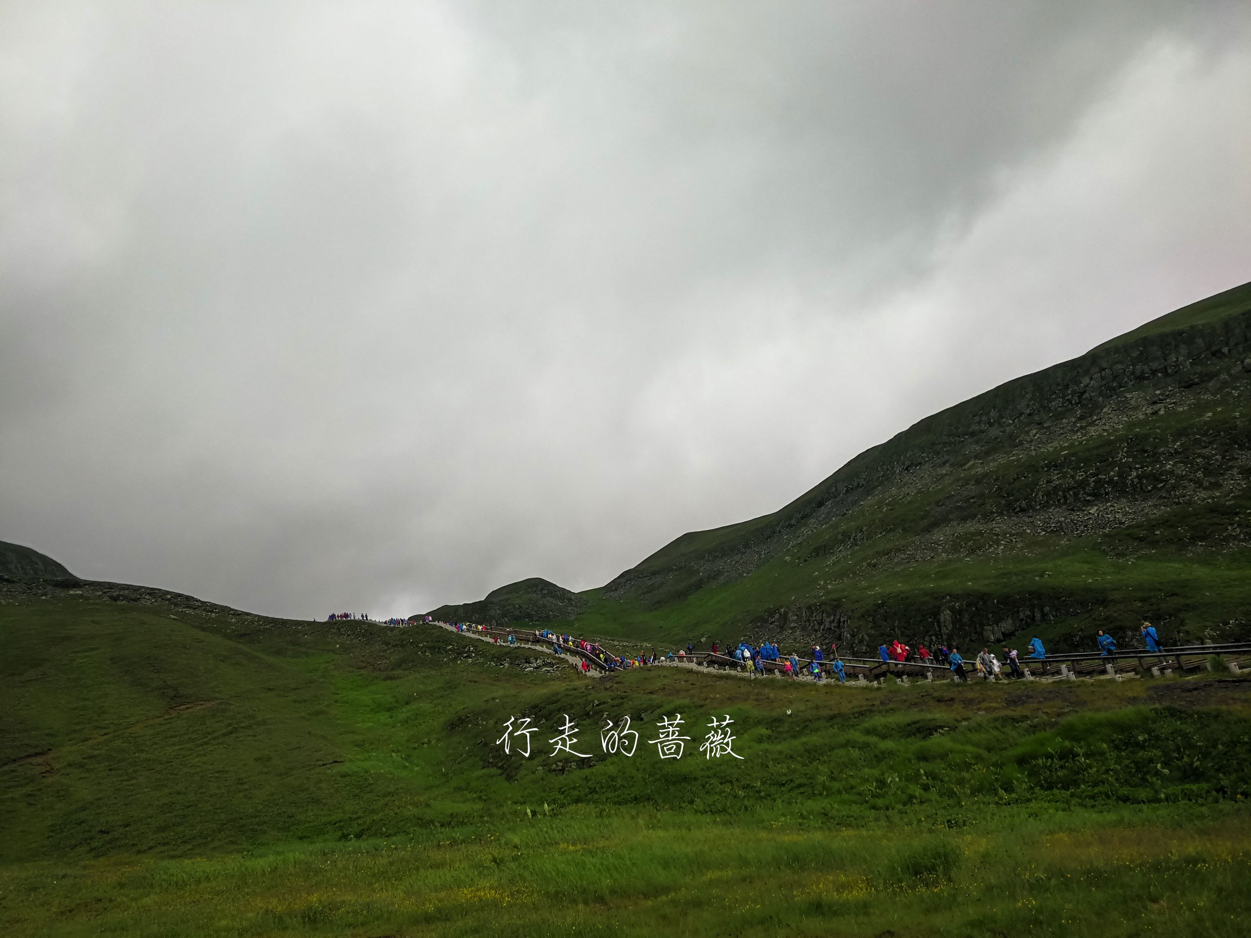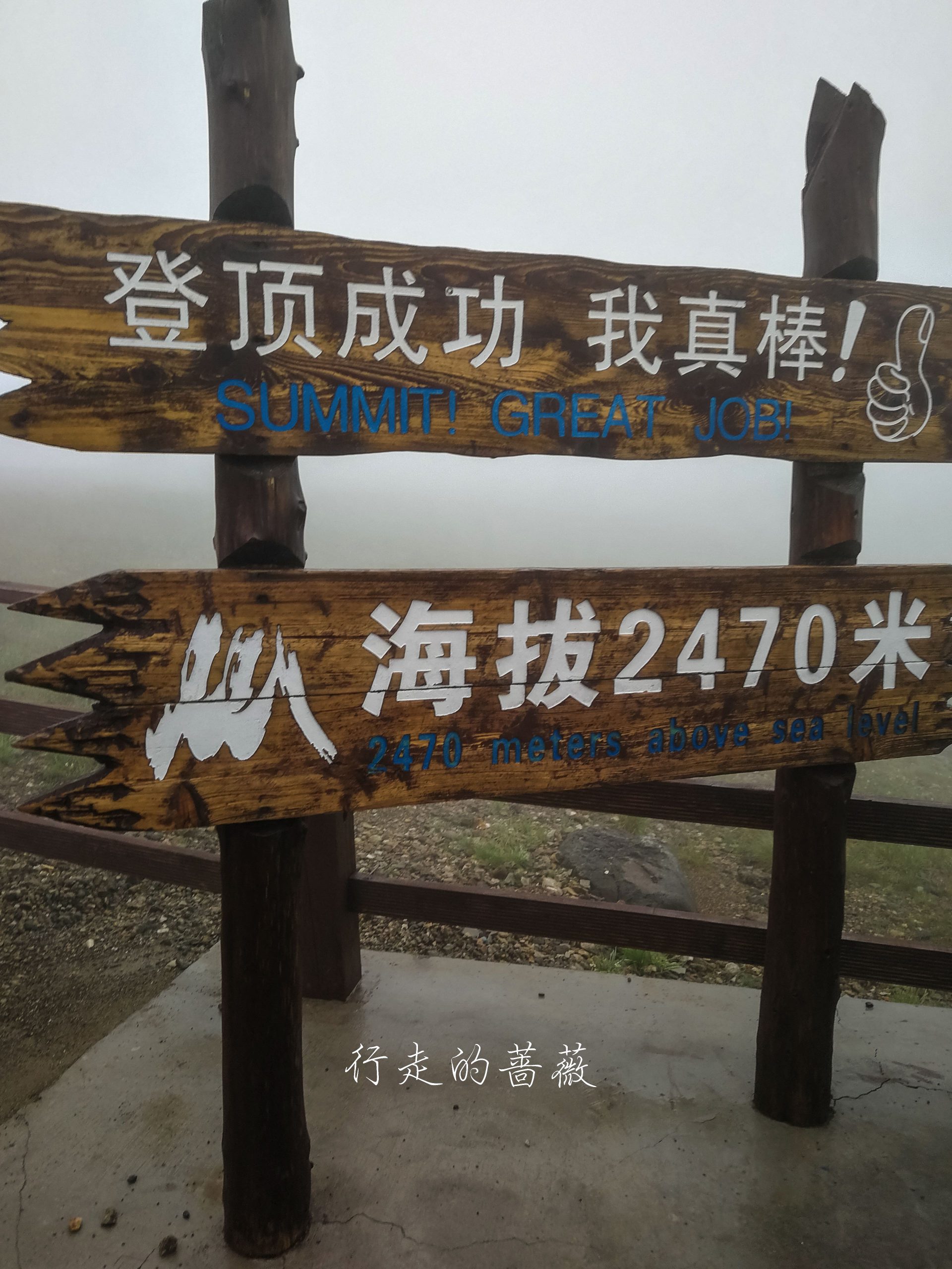 坐车到了山脚下,需要爬坡单程900米,共1442台阶。越往上走雾气越重,山头完全看不到,风也很大还飘着小雨。路上修的栈道挺好走的,虽然天气不好,人还是络绎不绝。走走停停,不到一个小时也就到顶了。