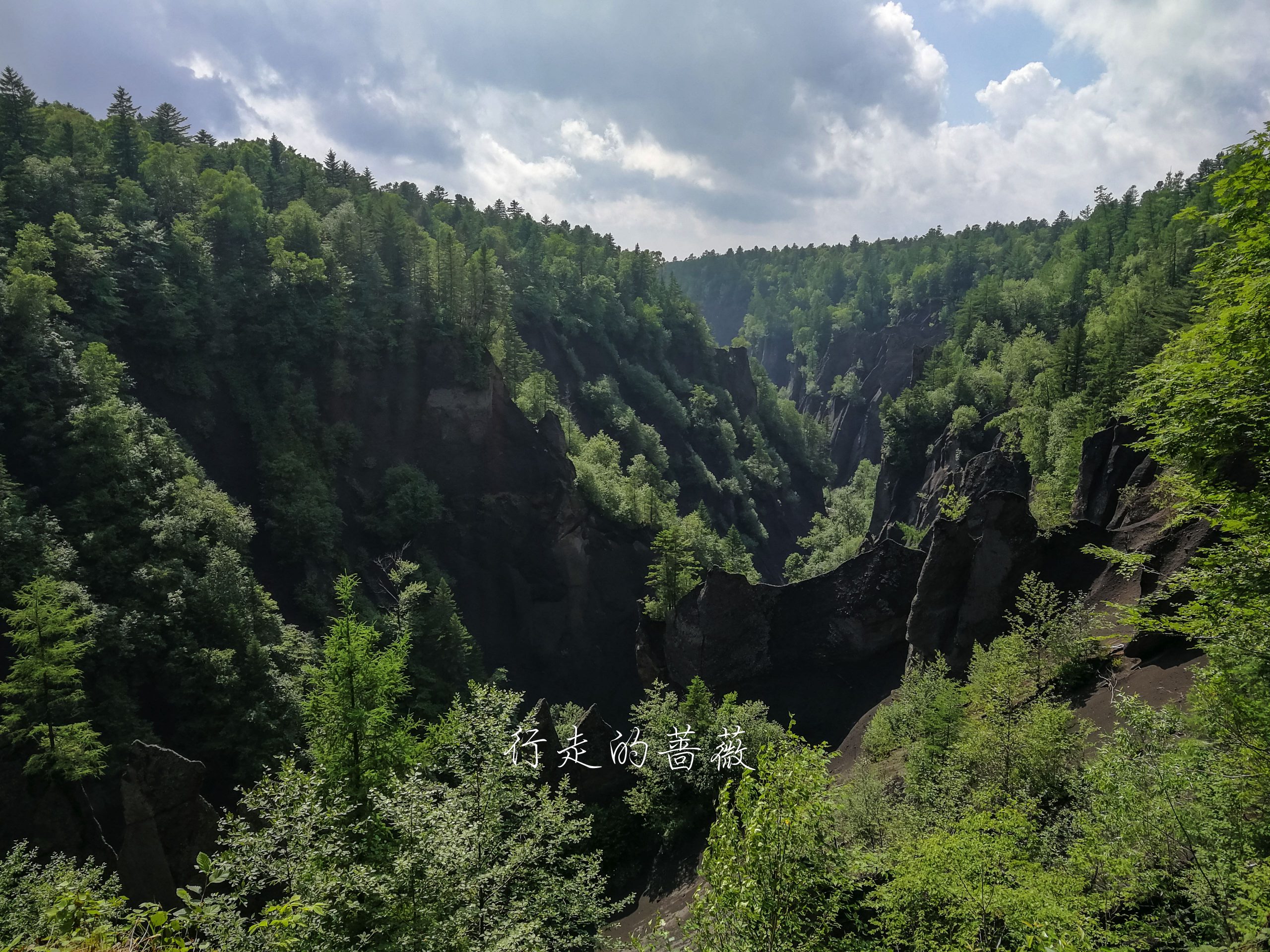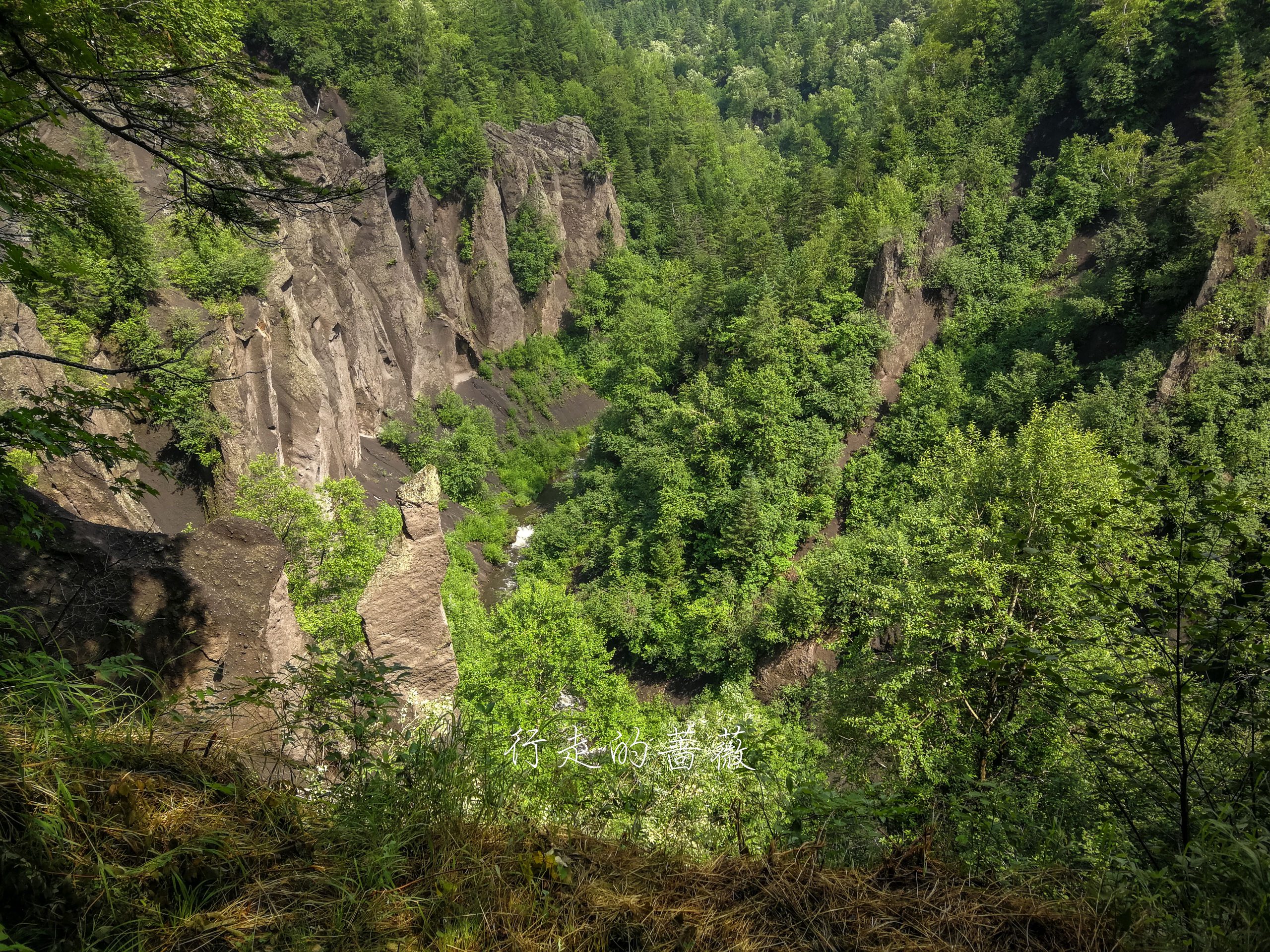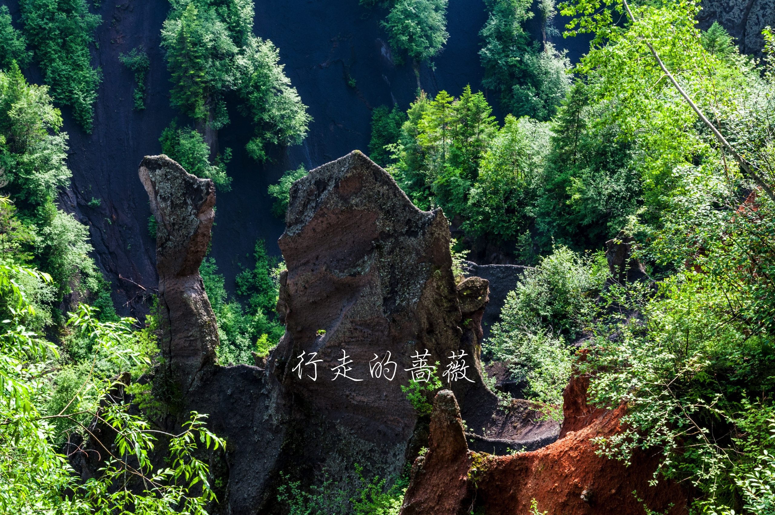 山下完全一片风和日丽,坐车来到了锦江大峡谷。这里也有修好的栈道,沿着在森林里走了一圈,很多参天的大树。
