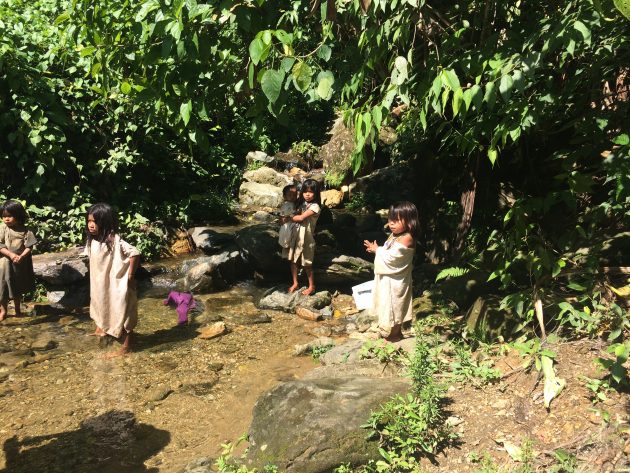 玩了半个小时,从河里出来继续赶路,还以为会是个容易的开始,没想到很快给个下马威。一连串的上坡,一个接着一个的转弯看不到尽头,第一次体会到什么叫做密不透风,潮湿闷热到一个不行!我们有两个向导,一个小帅哥John是主要的负责人,但是他英语不怎么会讲,另外一个向导Javir好像还在实习阶段算是副手,他英语还可以交流,理论上是可以给我们翻译的。但我们团有两个哥伦比亚姑娘Paula和Laura都在美国待过,所以英语都很好,有时候她们就顺手帮忙了。后来才知道她俩是cousin,大概是表姐妹。