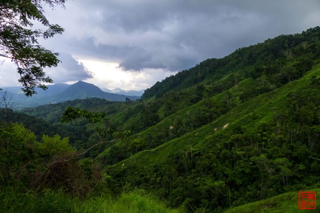 至少爬了一个小时的大坡,接着就开始下暴雨了,还好已经开始下坡,下雨反而能缓解些闷热。背包里面的东西出发前都用两层塑胶袋裹好的,外面又套了防雨罩加另外一个袋子,很安全基本没事。但人肯定是浑身湿了个透,我的Gortex外套还是遮雨效果不错,有人说穿了也没用还很热,我倒是觉得还不错,至少不会觉得浑身湿湿黏黏的难受。