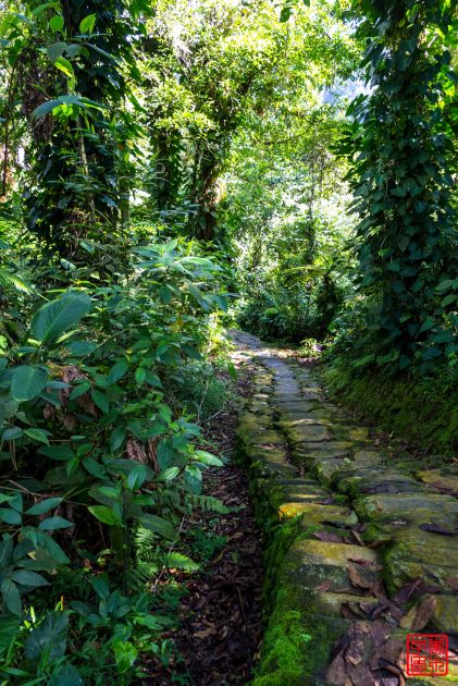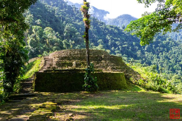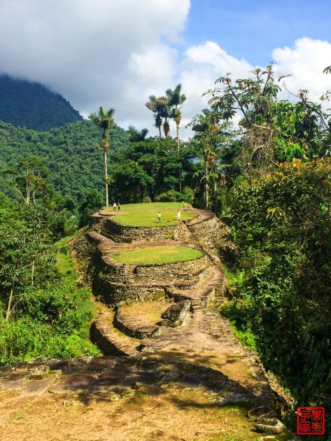 这个就是失落之城Teyuna的经典照片,现估计是本地原住民Tayrona在公元800年建立的,比马丘比丘还早650年。现在仅剩下些石头的遗址。1972年一些本地的寻宝人发现了顺着石头铺成的路可以爬到山上的失落的古城,之后一些瓷器和金器就出现在黑市上,考古学家1976年来到这里,并在1976到1982年间进行了遗址修复,本地的部落Arhuaco、Koguis和Wiwas声称他们早在遗址发现之前就已经时不时来此拜访,但一直没有公开。他们认为这座叫做Teyuna的古城是他们的祖先Tairona人所建立的,很可能是当时政治和生产中心,在周边村庄中处于重要的地位。当时大概有2000到8000人,被西班牙征服以后就被遗弃了。