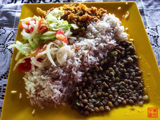 中午返回宿营地,下坡比上坡还要辛苦,因为石头很湿滑,要很小心。我和两个英国姑娘很早就已经返回宿营地了,一点钟就开始吃饭,等其他人回来我们都已经吃完饭了。