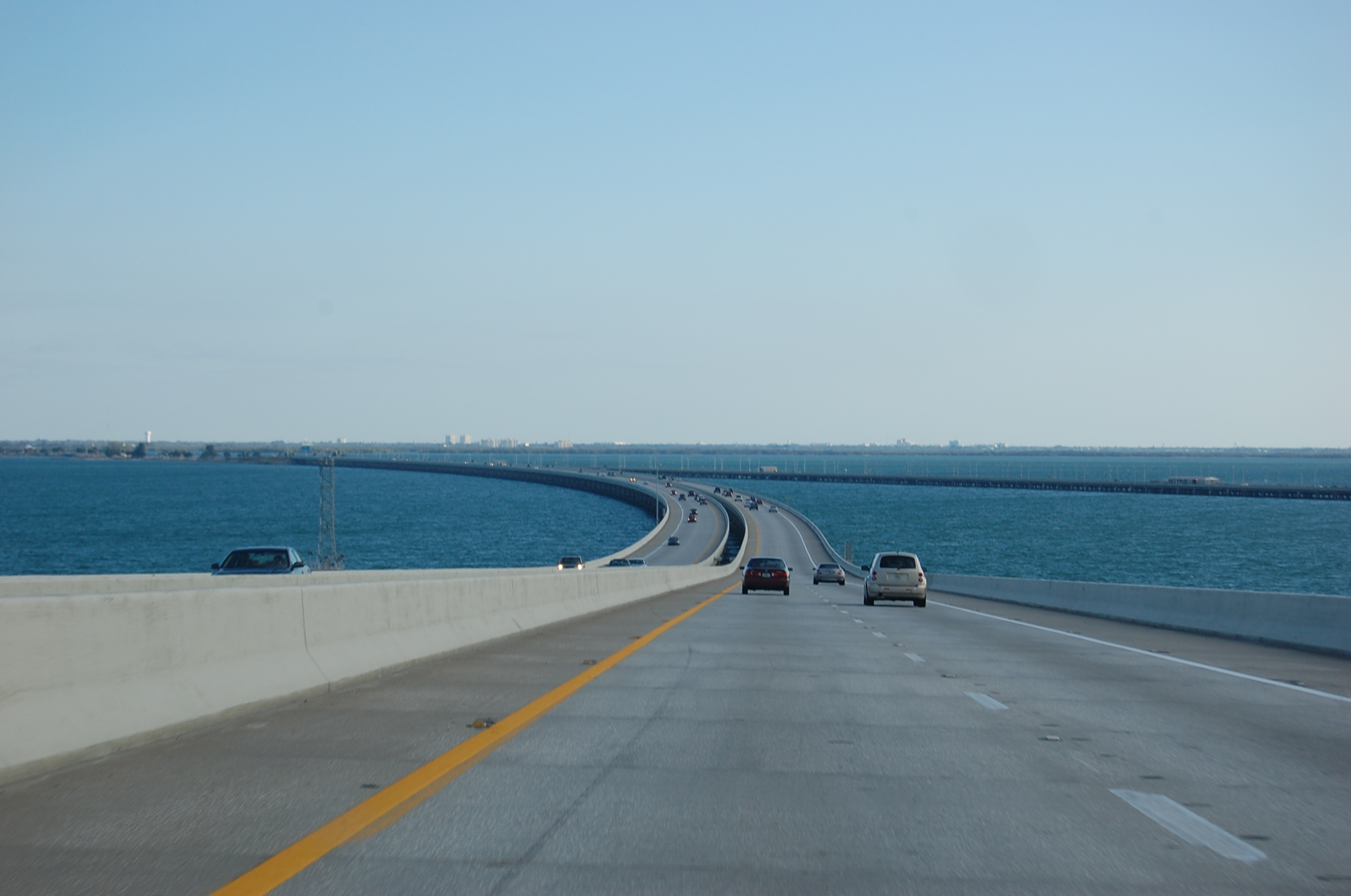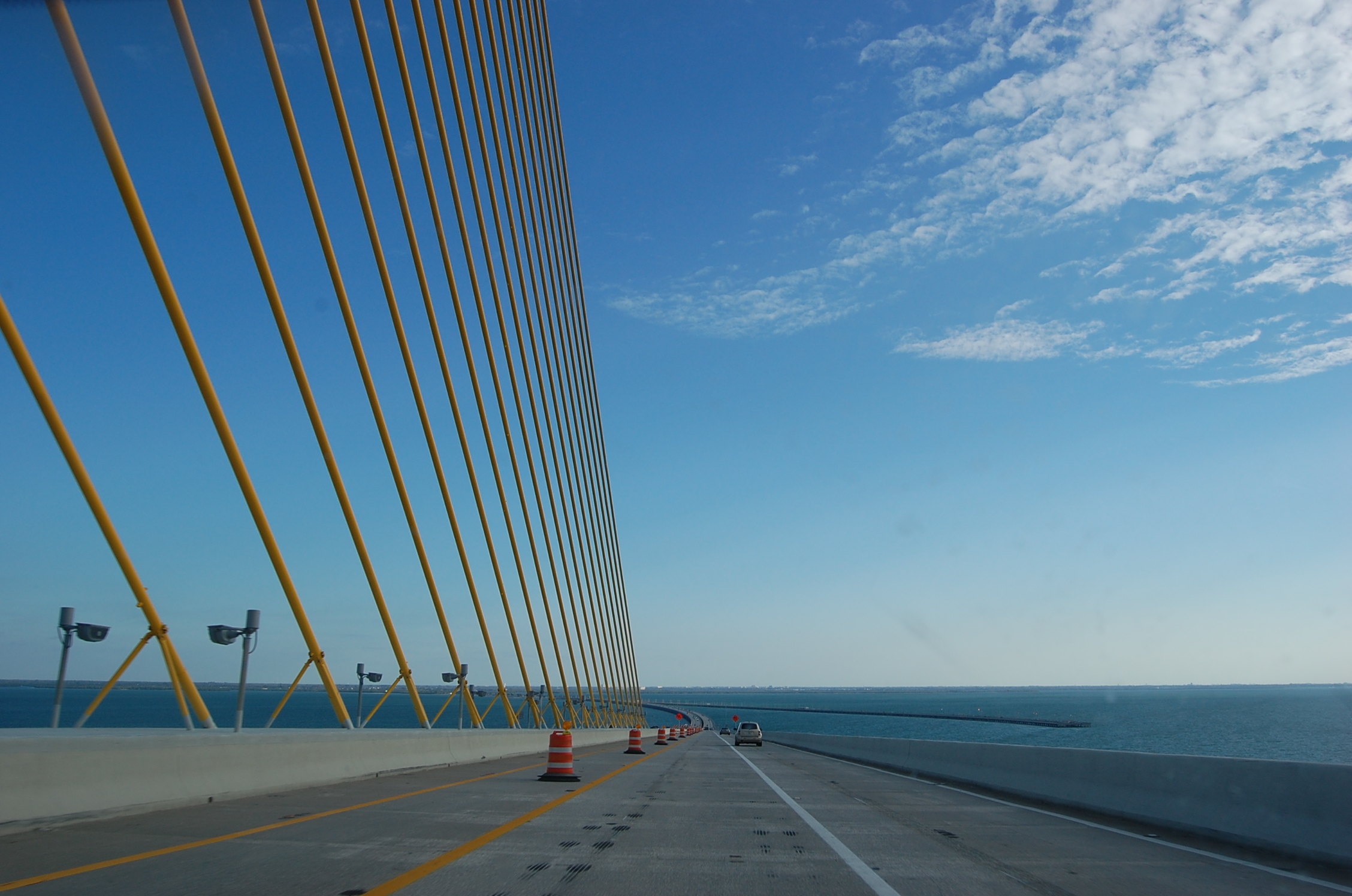 来之前听说Tampa到St Petersburg有一座桥非常美,我以为就一座桥呢,结果我们本来找Clearwater就绕路绕了半天,途中经过好多桥,也不知道传说中的那个桥是哪个桥。最后我们走的那个桥挺长的,而且我觉得也很漂亮,我们中间去休息站想拍几张照片,不过光线不太好,就打算回去了。结果GPS指反了方向,我们又走回去了,然后重新回来。这样同一座桥走了3遍,还亏它那么长,搭进去几十迈,唯一的收获就是好歹拍到几张还不错的桥的照片。