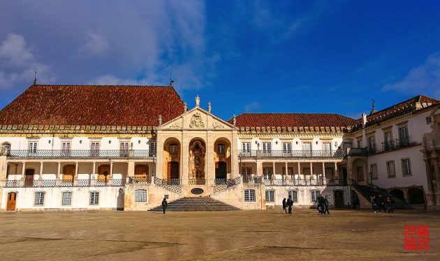 科英布拉大学建于1290年,是葡萄牙历史最悠久的大学,也是伊比利亚半岛仅次于西班牙萨拉门卡大学的第二古老的大学。当时,科英布拉还是葡萄牙的首都,是由国王迪尼士一世创立。之后250年间又在科英布拉和里斯本之间反复迁徙,直到1537年若昂三世国王将自己的王宫让给了这所大学,从此这所大学就在科英布拉安顿下来了。科英布拉大学于2013年被联合国教科文组织评为世界文化遗产。当今世界上一共有五所大学被列为世界文化遗产,它们分别是美国的弗吉尼亚大学(1987年入选),西班牙的埃纳雷斯堡大学(1998年入选),委内瑞拉的加拉加斯大学(2000年入选),墨西哥国立自治大学(2007年入选),和葡萄牙的科英布拉大学(2013年入选)。只有科英布拉大学为此还特意发行了面值2.5欧的纪念币,网上偷的图。