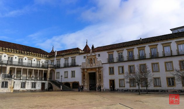 硬币上就是U字形的主广场,最高的那个是钟楼,旁边有小教堂会议厅等。这几个特色建筑真的特别美,颜色也很好看,怎么拍都拍不够,难怪科英布拉被称为葡萄牙的雅典。