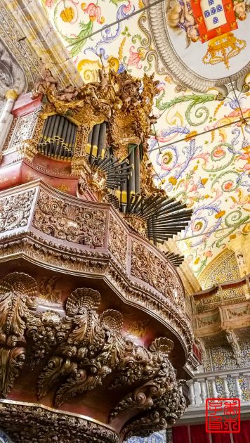 科英布拉大学最有名的是它的巴洛克图书馆,叫做Biblioteca Joanina,是需要买票参观的。卖票处不在图书馆,在费雷阿门外的一座建筑中。套票有几种选择,我买的是包括图书馆教堂还有其他几个地方。买票的时候会给你一个参观图书馆的时间,时间到了去门口等着才能进入,大概是为了控制人数。还附赠地图和宣传册,制作的很有质感,卖票的工作人员会给讲解地图,建议参观路线。