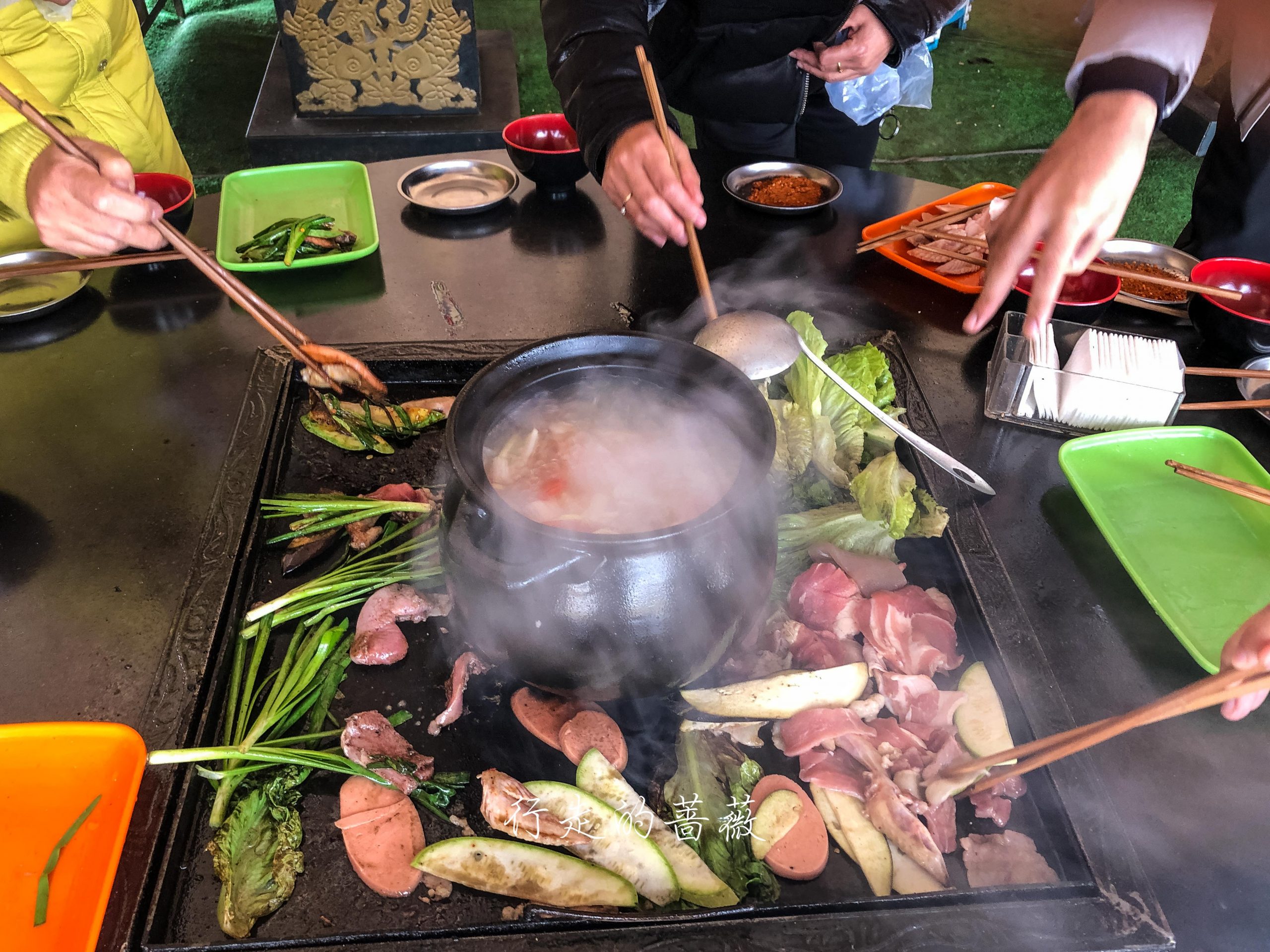 中午是在藏民帐篷里吃的烧烤,自己想吃什么就自己烤。味道其实还不错,牛肉好嫩,藏香猪也很香,但是猪肉有的不知道为什么硬硬的,大概没烤好。就是这个藏式烤盘实在是不靠谱,一直往外崩油,可怜我的冲锋衣是今年新买的,还没穿几次就这样华丽丽的袖子上全是油,真是要哭死。虽然咱这件是Gortex但是只防水不防油啊。更糟糕的是,在帐篷里熏得满衣服都是味儿,实在是太嫌弃它了,回去后在屋里晾了好久才敢收到箱子里。