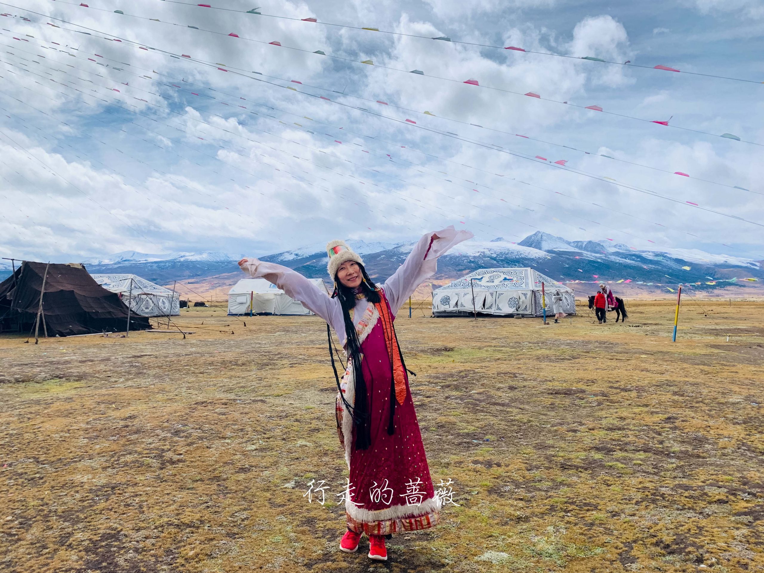 吃完饭和细细去换藏装,一位藏族老妈妈为我们挑好了衣服穿戴完毕。本来以为我的帽子太大,拍照一直往下掉,都遮住了眼睛。和细细交换后发现还是有点问题,藏族人脑袋都这么大的吗?!上次去西藏听说万里车后面一直放了藏装,但由于我们太懒所以都没拿出来给我们换。。。这次终于穿到了耶,上次穿大概还是小时候跳藏族舞蹈的时候,那时候觉得好漂亮的裙子呀,还有他们的发带当时也觉得好新鲜,今天一穿发现怎么袖子这么长啊。