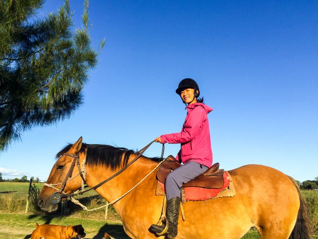结果等啊等啊,直到都快黄昏了,Miguel才喊我出来。先是和马培养培养感情,给他刷刷毛舒服舒服。然后Miguel带我在马场跑了跑,他家的马确实训练的好,很敏感非常好控制。时间也没多久,差不多太阳落山就回去了。我心里其实是不太高兴的,因为本来骑马是两部分的,一部分在马场,一部分在外面,行程上写都是在上午的。因为我去的前一天是下雨,所以丹麦姑娘他们这一波人就没办法骑马,只好延迟了一天,导致我的骑马行程也推后了。但是因为推后那一天Miguel是有事情没有空,所以只好把我挤到和他们一天,但是时间不够就只能在马场骑一下。没有过到瘾,有点失望,但也没办法,c’est la vie。。。