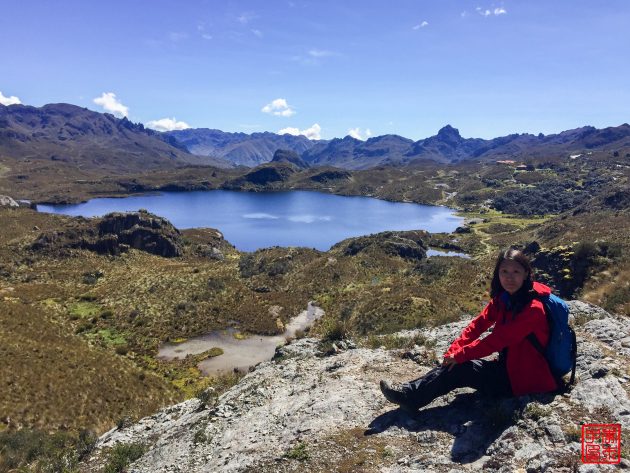 和Audrey结伴,一大早就从昆卡Terminal Terrestre汽车站坐往瓜亚基尔方向的汽车,和司机说到公园门口停车,大概一个小时就到达。大家都说天气很差天天下雨,我们还真是人气爆表,天气很给力,幸运!公园是免费的,但要在门口登记,选了一条徒步路线,绕湖走了两小时,因为是高原还是有点小吃力。还在想Audrey体力怎么这么好,原来她是健身教练哈哈。公园风景真的很赞,蓝天倒影着的高原湖,美呆,路边还看到很多肥肥的野兔子。