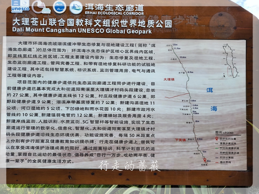 我们住的是才村码头,今天的计划是沿着洱海生态廊道往南边阳南溪方向进行环洱海骑行。这条沿洱海的路刚修好没几年,上次我来的时候还没有,近些年一直在整治洱海的周边,希望越来越好。因为不通车,所以非常适合骑行,如果不想骑行,也有电瓶车可以乘坐。