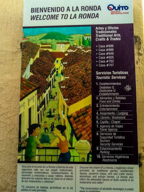Calle de la Ronda是厄瓜多尔非常有特色的一条小街,2007年重建。感觉和魁北克城的香普兰小街有点类似,有一些本地手工作坊,白天很安静,非常文艺小清新,连咖啡店都晚上六点才开门。但等到晚上就完全苏醒,据说非常热闹,餐馆和酒吧全都开门了,完全的商业化。