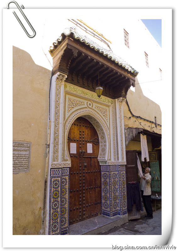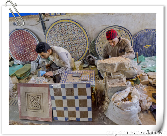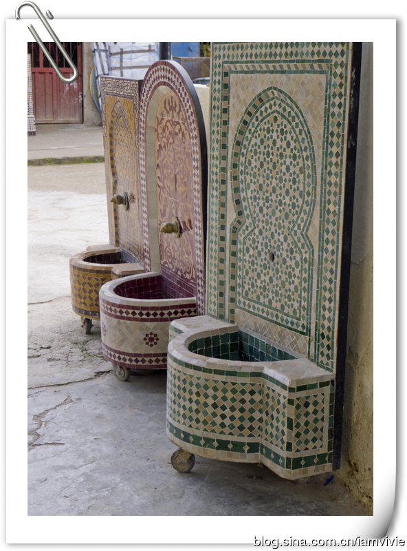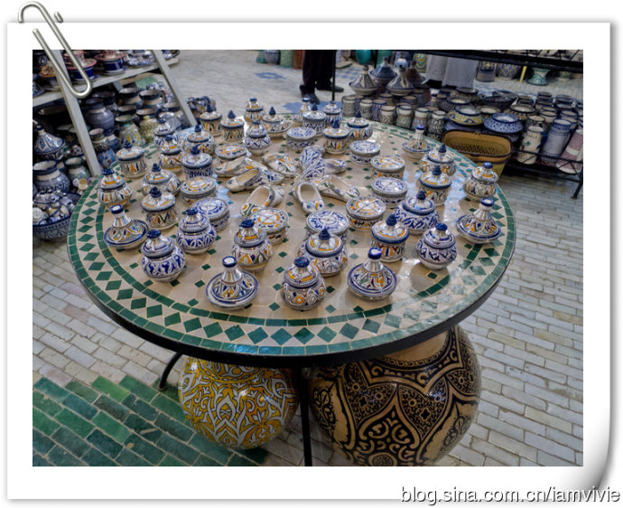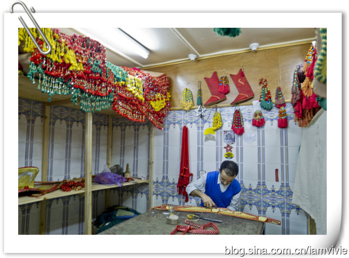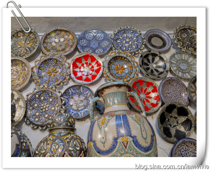 菲斯古城臭名昭著啊,我们三个姑娘,怕骚扰怕麻烦,就请了个导游。导游是当时同住一家旅馆的英国人推荐的,他们自己请了觉得不错。是在Hotel Batha接待处,那里离蓝门不远。导游三小时,一人100迪拉姆。导游是Berber人,一见到我们亚洲人,就开始说咱们同一个祖先,是啥啥啥,费劲脑汁想了半天,才领悟到原来说的是成吉思汗啊!额,这样说也行啊。。。导游就带着我们大街小巷里穿梭,去了好多作坊什么,反正就是一路购物之旅呀!