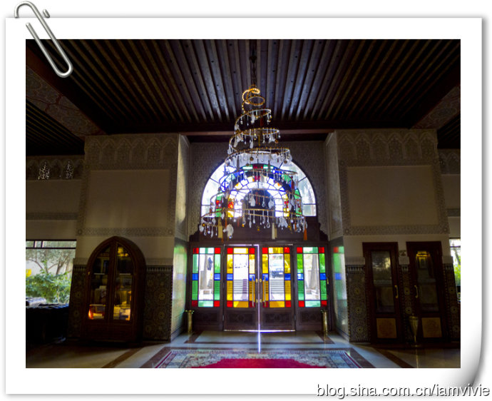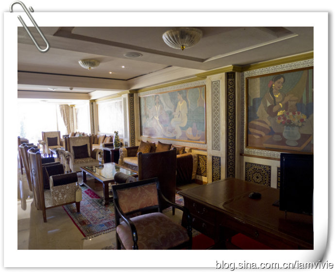 之后来到老板家,原来老板住的是另一个旅馆。她说这是她妈妈留给她的,她在意大利呆了10年,后来要继承这个旅馆就回来摩洛哥了。这一件旅馆比我们那一间高级很多,宽敞气派哎,比起来我们那一间太寒酸了。。。难怪老板不住我们那一间自己住这一间。这一间就是位置稍微有点难找,晚上街道没有人阴森森的。参观完了,我们就只好自己摸回去了,我们方向感都不错的说。