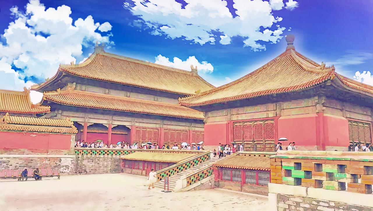 话说在中国拍照,最需要的是除霾现蓝天和除路人甲乙丙丁的滤镜了,这么美丽的地方可是真心没法拍照,都是人头也就算了,一把一把的阳伞简直是喧宾夺主的一把利器哎。偏殿的人好少,照出来看着都不像故宫。像中国人一般都去八达岭长城,老外大多去慕田峪,Tina这次在慕田峪长城竟然拍到好几张后面一个人都没有的照片!这时候用用新海诚的动漫滤镜真心不错,非常喜欢在中国古建筑上用,很有味道,最主要的是还能加点蓝天白云。